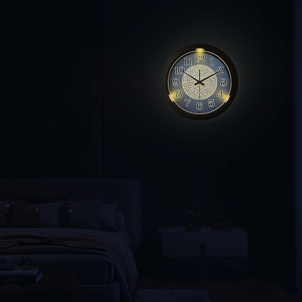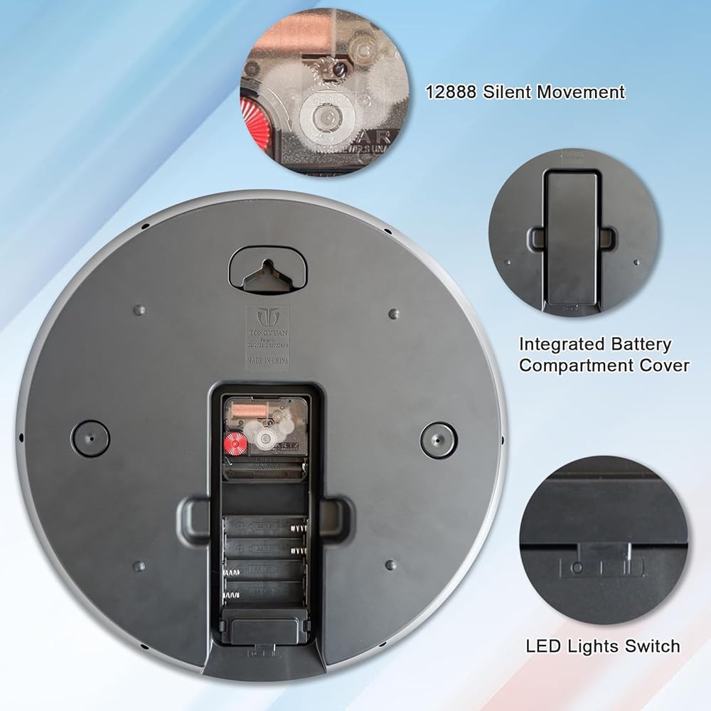 لوماندا ساعة حائط باضاءة ليلية، ساعة حائط LED دائرية صامتة تعمل بالبطارية مقاس 13 انش للمنزل والمكتب والمطبخ وغرفة المعيشة، سطوع قابل للتعديل تتوهج في الظلام، ساعة حائط رقمية كبيرة
