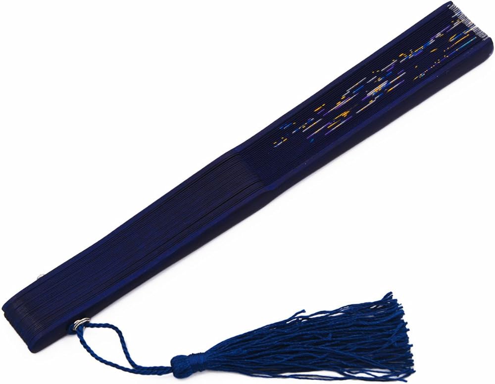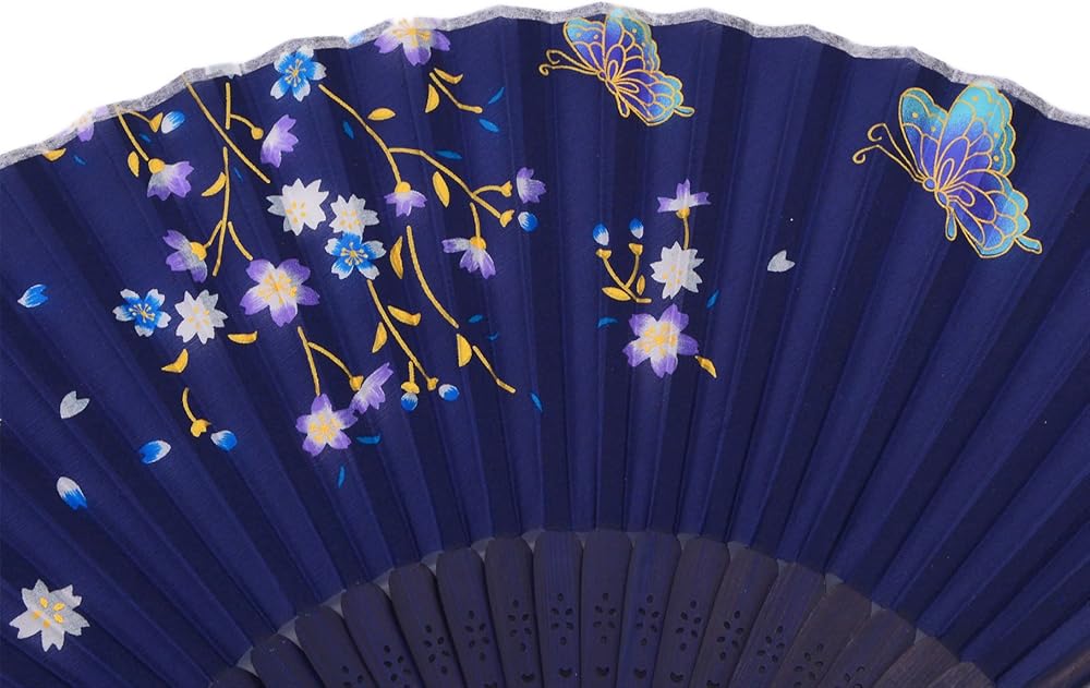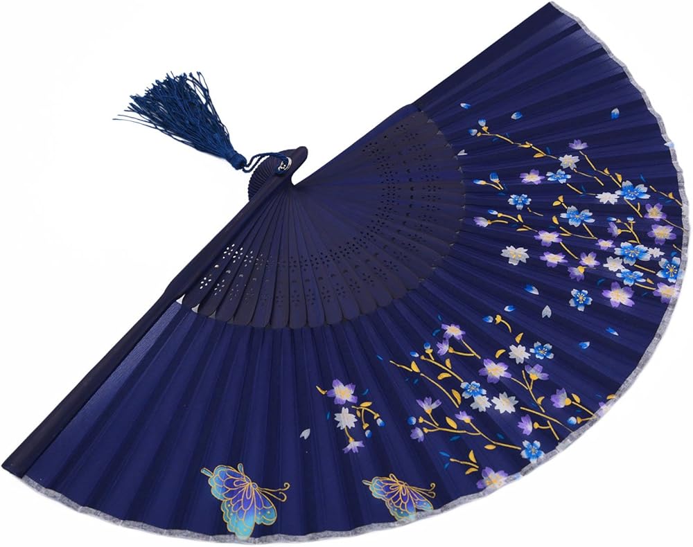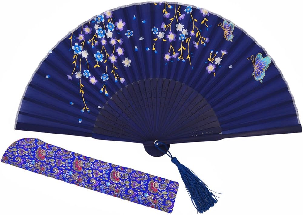 مراوح أماجيجي حريرية قابلة للطي يدويًا للنساء بإطار من الخيزران (أزرق)