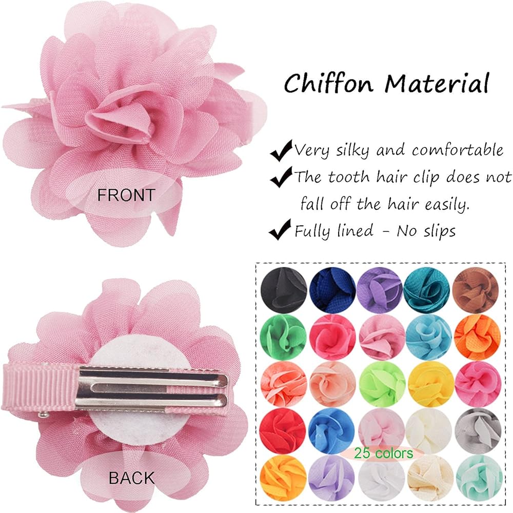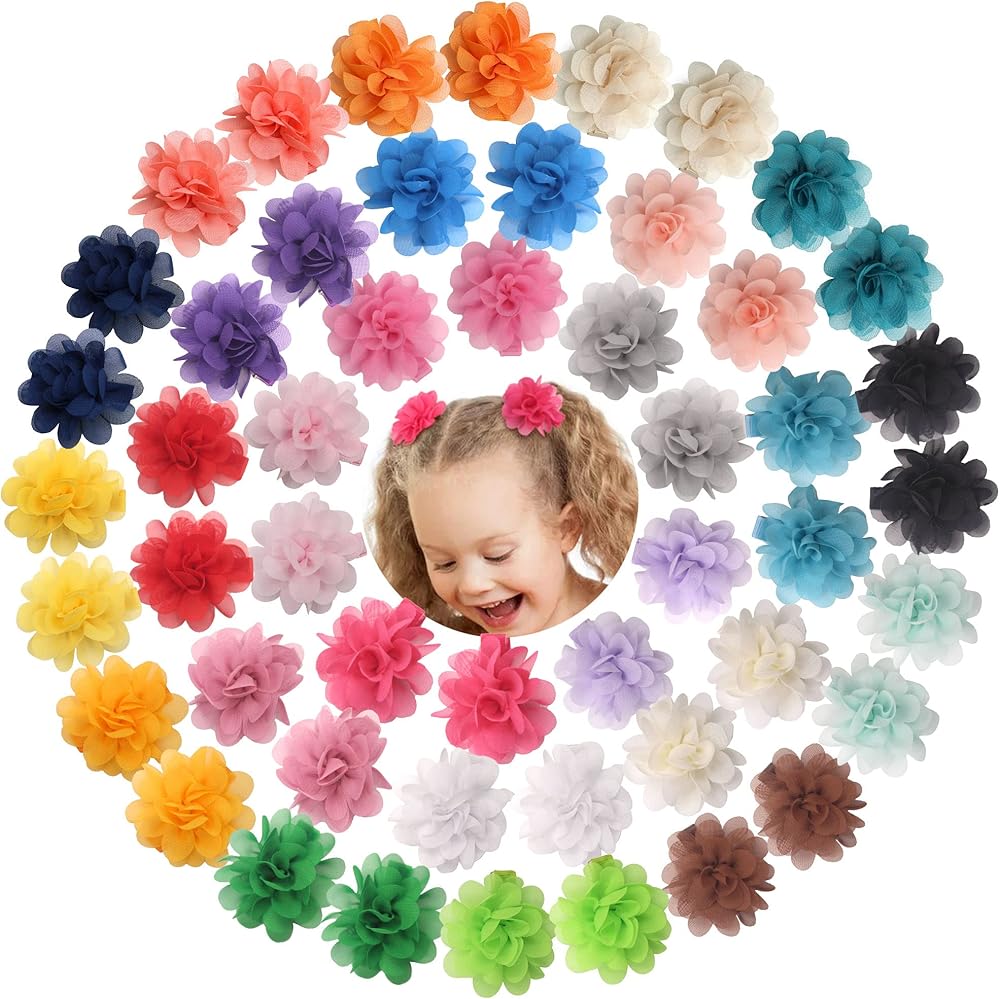 تتضمن العبوة: 50 قطعة من مشابك الزهور الشيفون للفتيات الصغيرات.