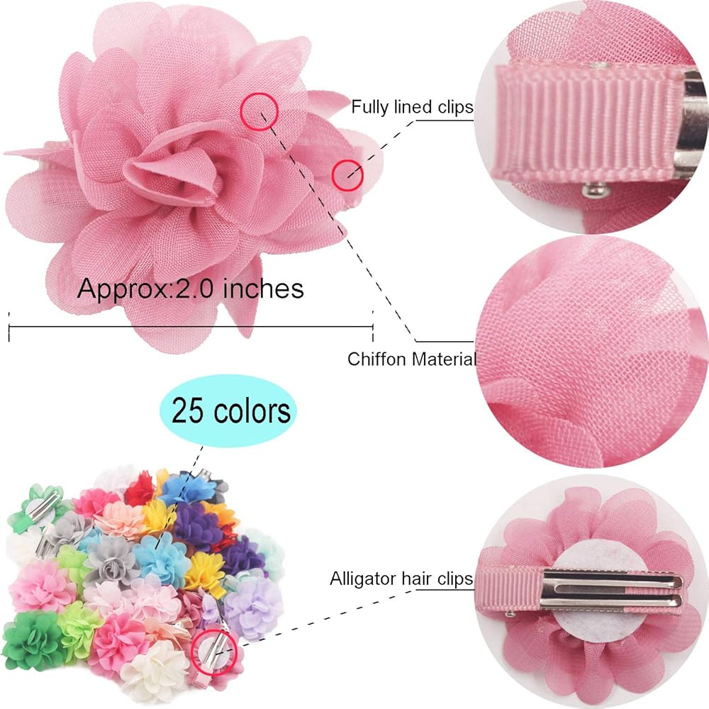 50 قطعة من مشابك الشعر على شكل زهرة شيفون مقاس 50 سم من qearl، مشابك تمساح مبطنة بالكامل، إكسسوارات مشابك شعر للفتيات الصغيرات والرضع والأطفال الصغار في أزواج