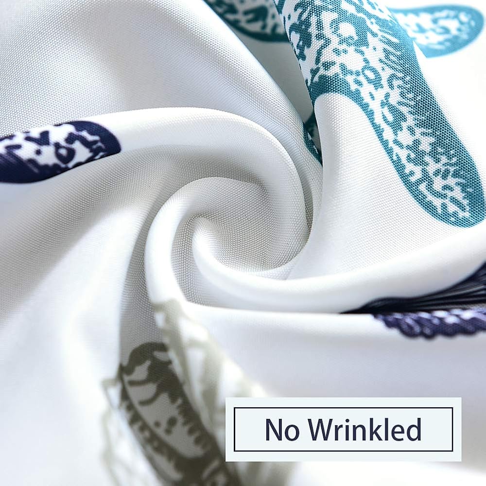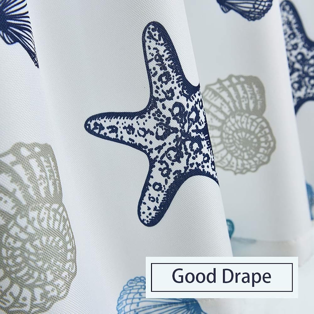 • 【نسيج عالي الجودة】 مصنوع من قماش البوليستر بنسبة 100%، ومزخرف بنجمة البحر الزرقاء ونمط محارة رمادية، بدون بطانة. الستائر الساحلية اللطيفة قوية ولكنها لا تزال ناعمة الملمس.