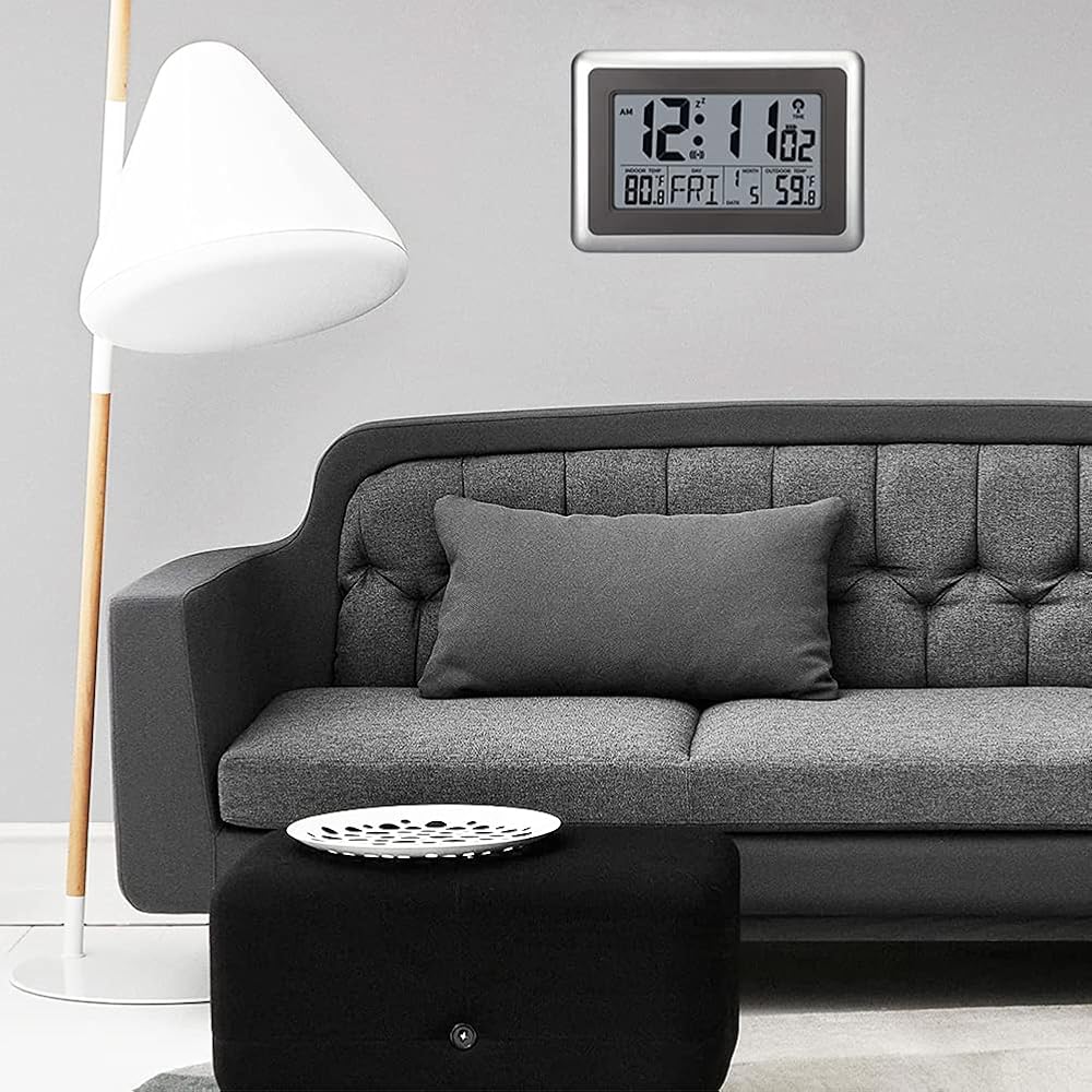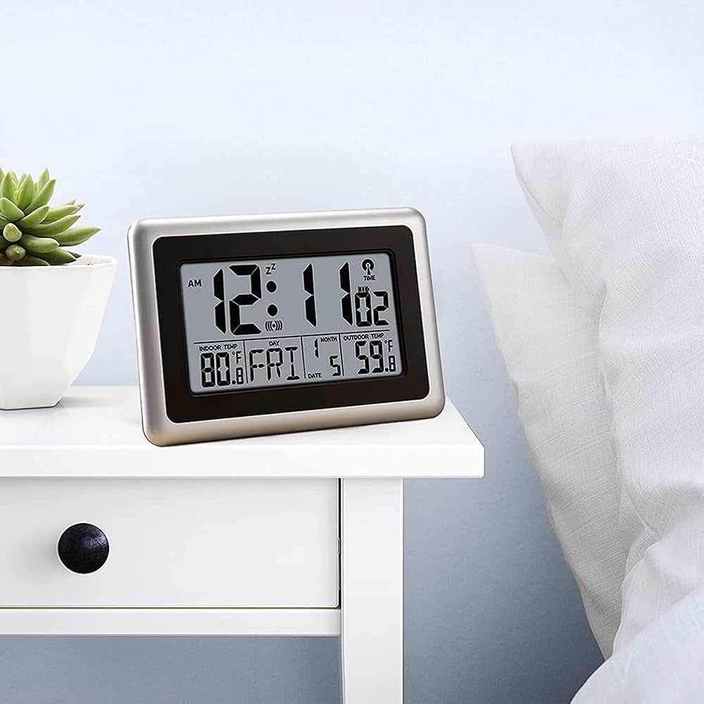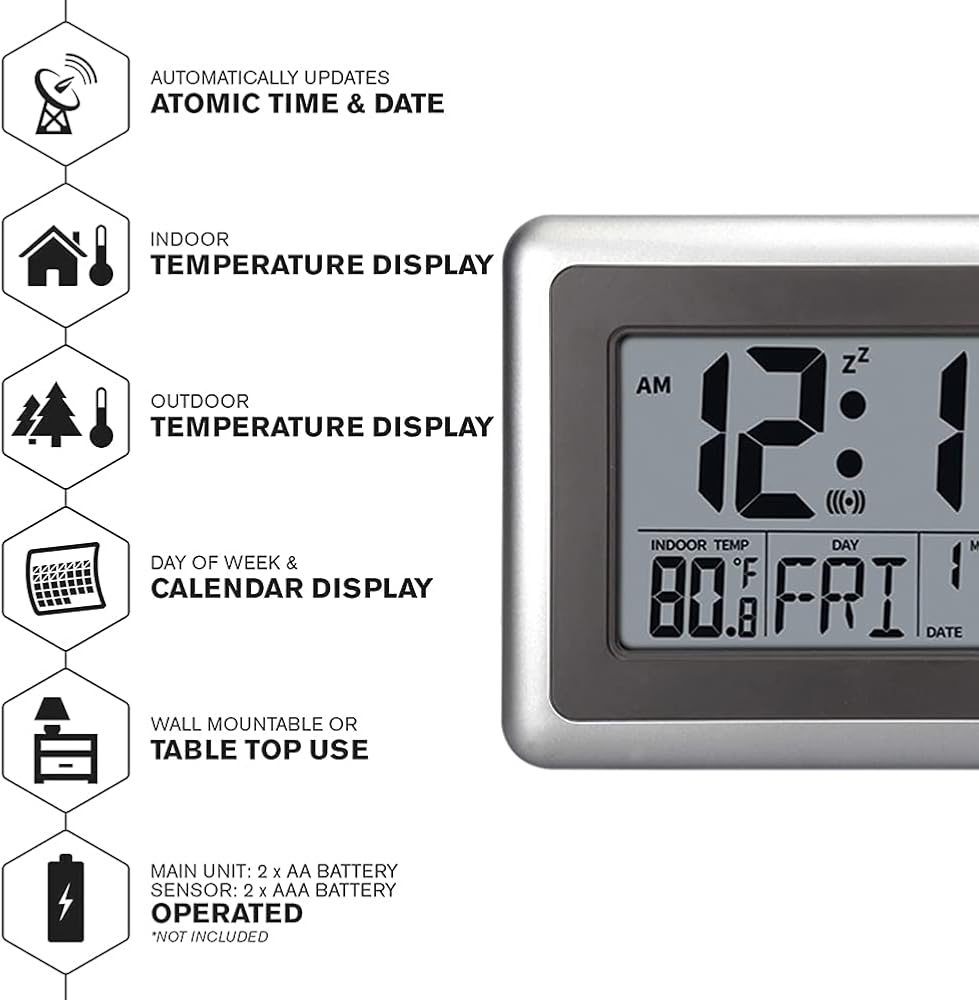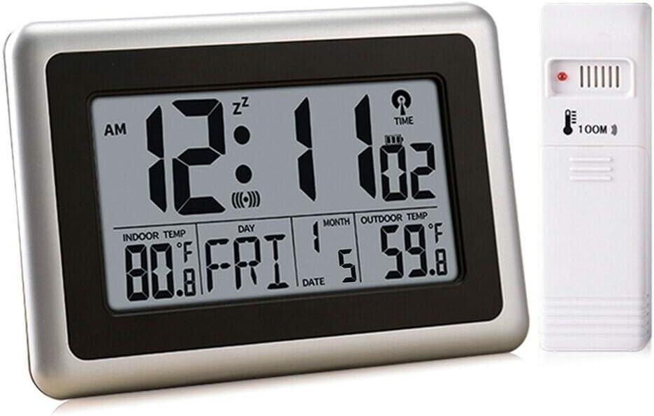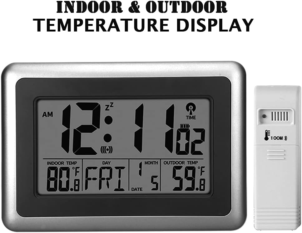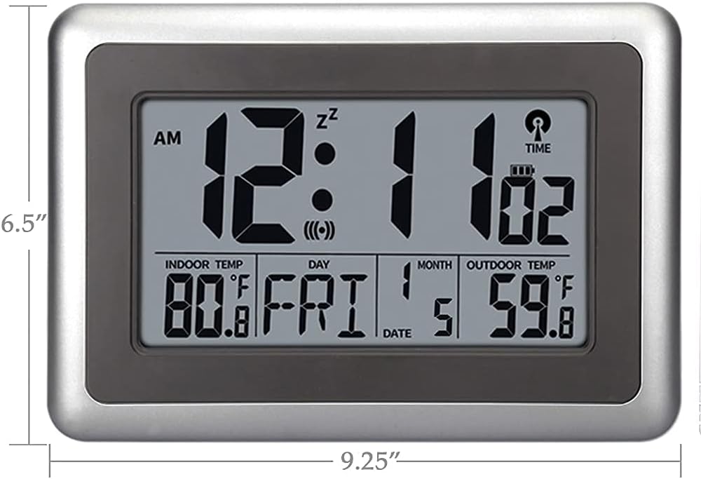 ساعة رقمية ذرية من UMEXUS مع درجة حرارة داخلية وخارجية، ساعة منبه للحائط والمكتب مقاس 9 بوصة، عرض كبير لتاريخ التقويم تعمل بالبطارية لغرفة النوم والمكتب والمطبخ