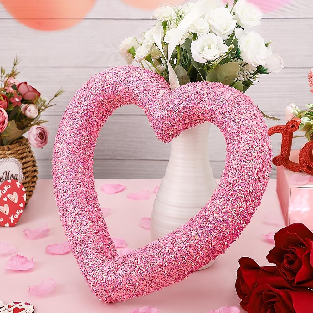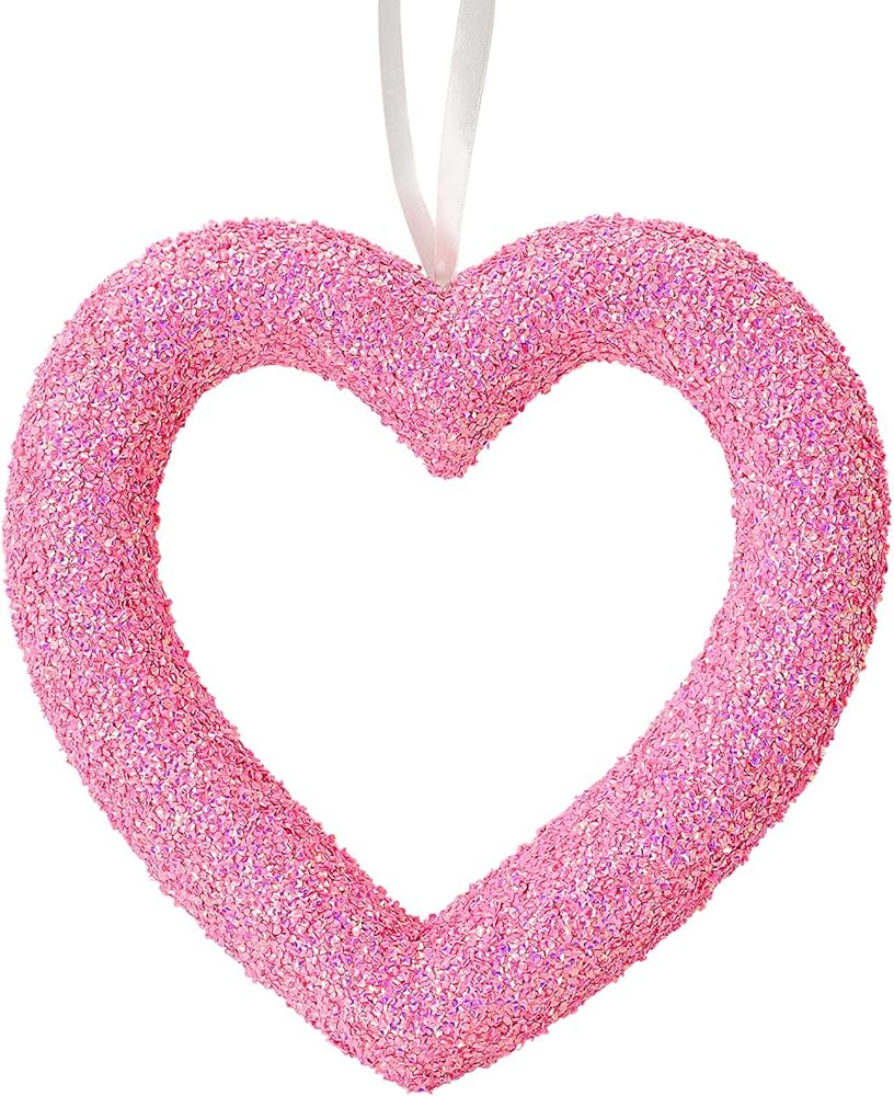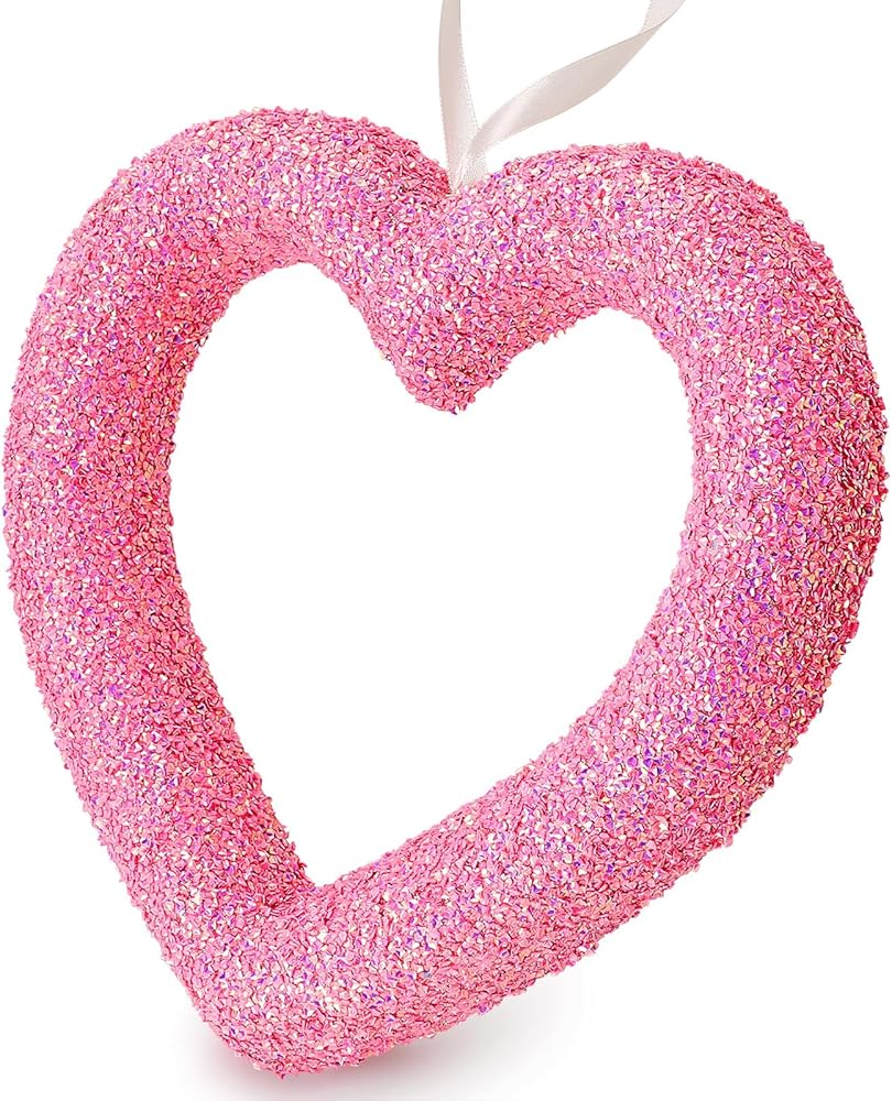 Udefineit عيد الحب 3D بريق القلب اكليلا من الزهور، 11in الوردي الترتر عيد الحب رغوة القلب اكليلا من الزهور للباب الأمامي، الاصطناعي على شكل قلب دونات اكليلا داخلي شنقا الحلي علامة جدار ديكور النوافذ