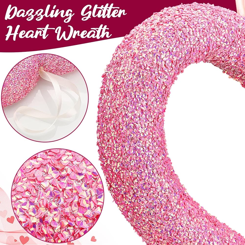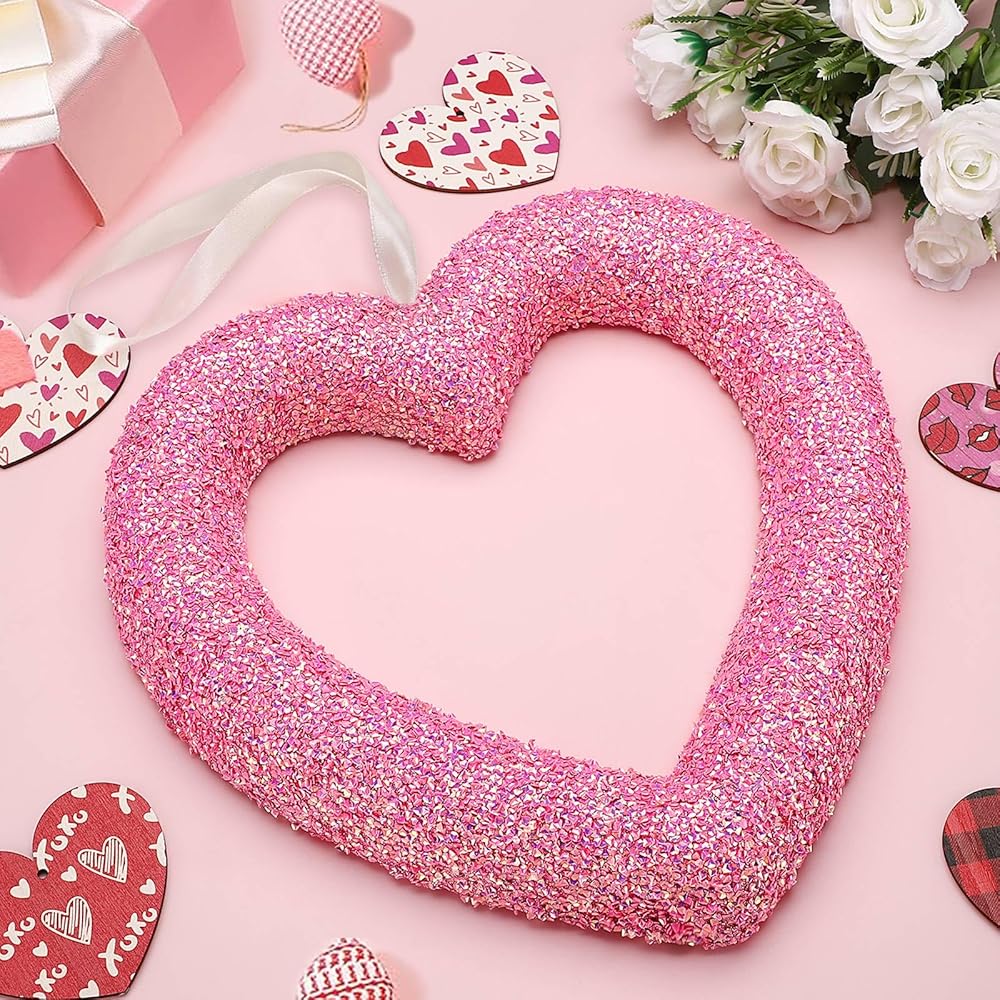 👑👑👑👑👑👑👑👑👑👑👑👑👑👑👑👑👑👑-- ابواب تهمس بالكلمات الجميله! إضافة رائعة وممتعة لديكور عيد الحب، هذا الإكليل مصمم على شكل قلب وسطحه مليء باللمعان الوردي. خلال الأشهر المظلمة والباردة من العام، ستضيف أكاليل عيد الحب الجميلة بقعًا من الألوان الزاهية إلى ديكور منزلك الشتوي!