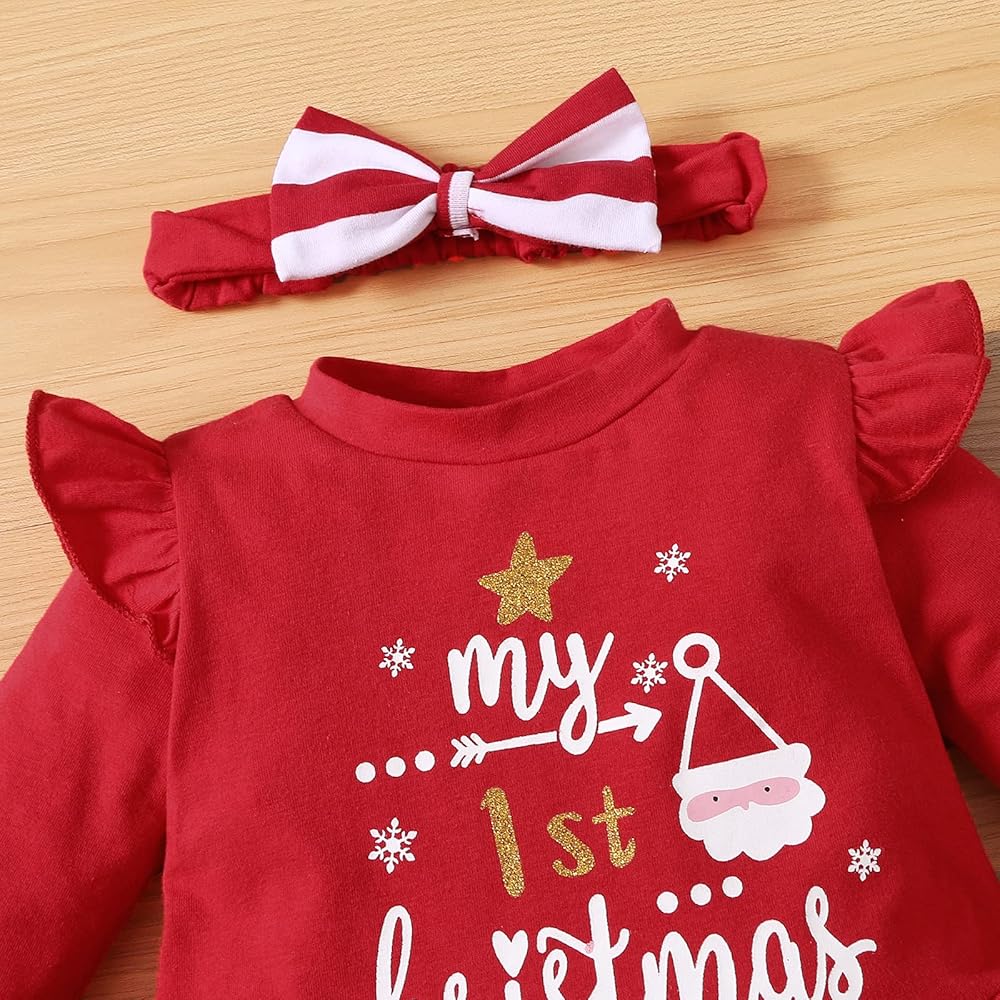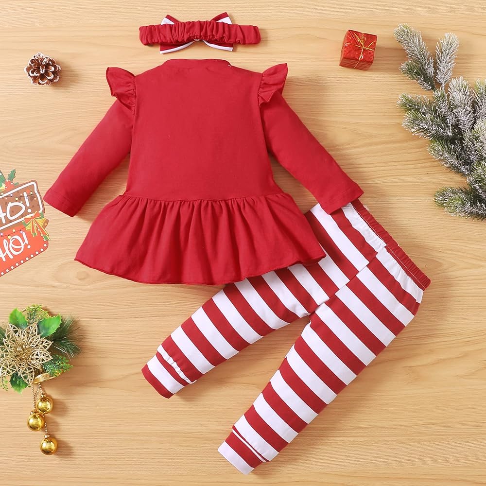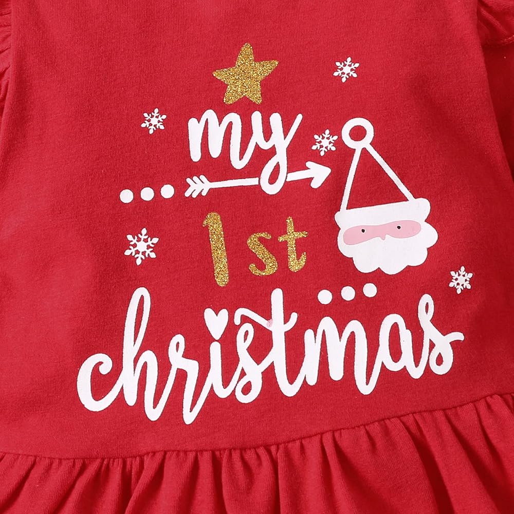 • Cute baby girls Christmas clothes outfits. Material: Cotton blend, soft, comfortable and breathable, skin-friendly.