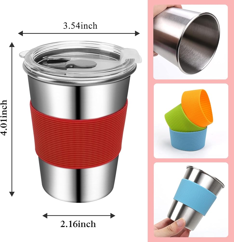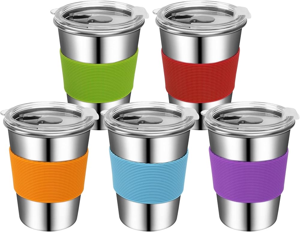 أكواب للأطفال والصغار، 5 أكواب من الفولاذ المقاوم للصدأ سعة 12 أونصة للأطفال الصغار مقاومة للانسكاب، أكواب شرب معدنية للأطفال في مرحلة ما قبل المدرسة للمدرسة، في الداخل والخارج