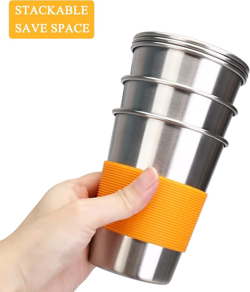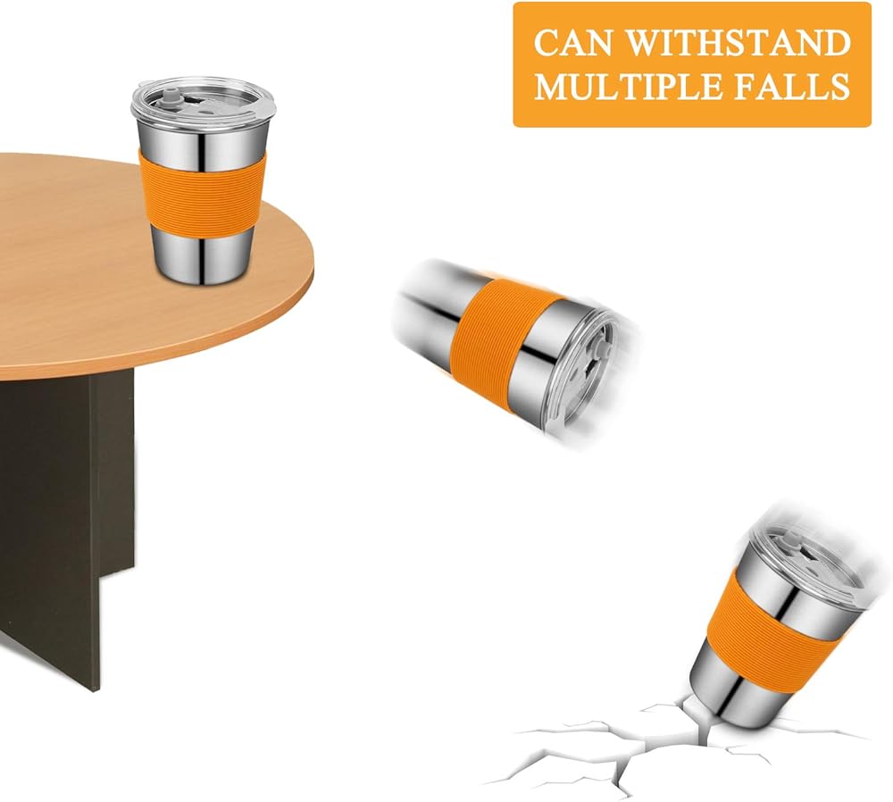 Color Silicone Sleeve - Stainless cups for kids come with an anti-slip colorful silicone sleeve which not only protecting your hands from hot or very cold beverages, but also helping your kids to identify their own cup.