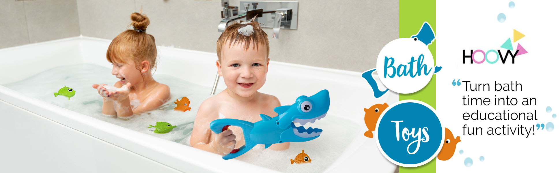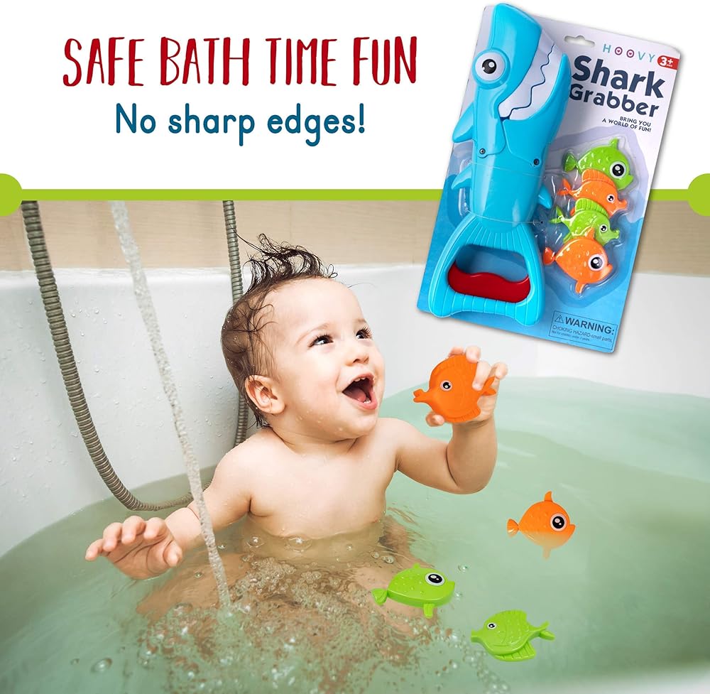 هوفي باث تويز متعة حوض استحمام الطفل لعبة حمام القرش للأطفال الصغار الأولاد والبنات ممسك القرش مع 4 لعبة أسماك متضمنة (ممسك القرش)