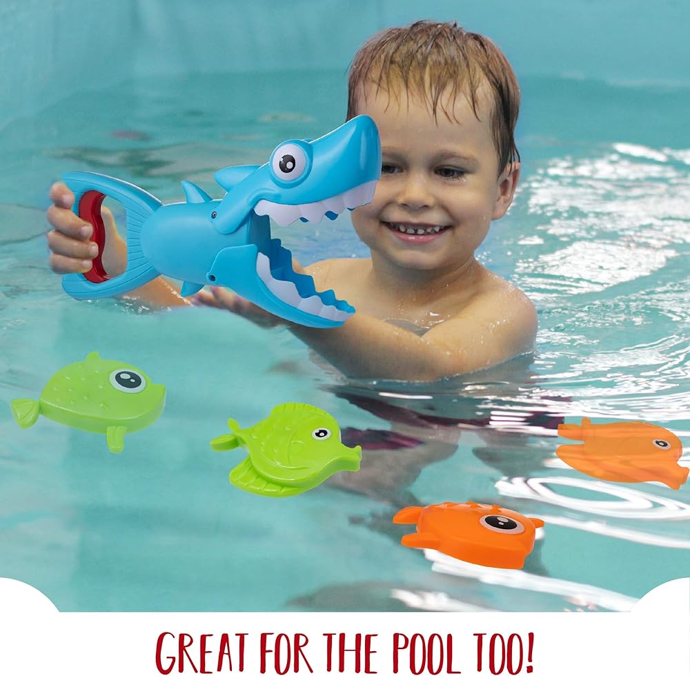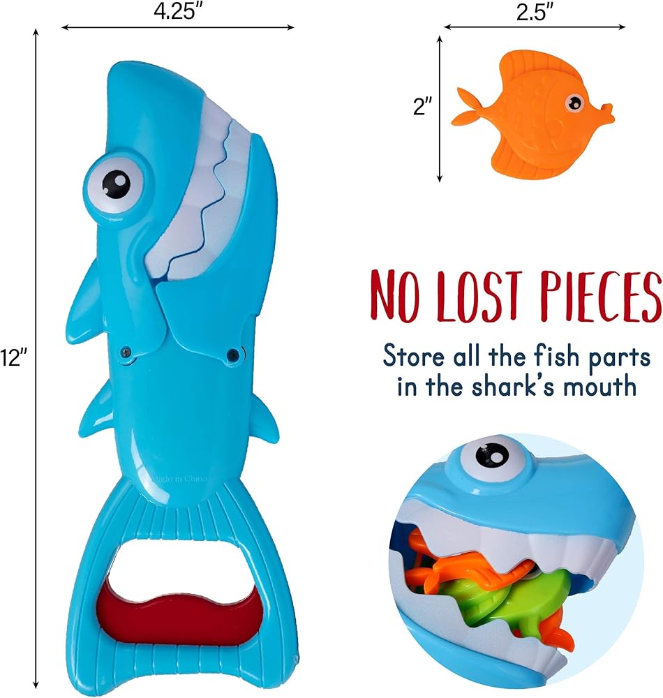 • ألعاب استحمام ممتعة: تتميز لعبة الاستحمام هذه بتصميم لطيف الشكل وقبضة مريحة لأيدي الأطفال الصغار، وسهلة الضغط والإمساك بالأسماك.
