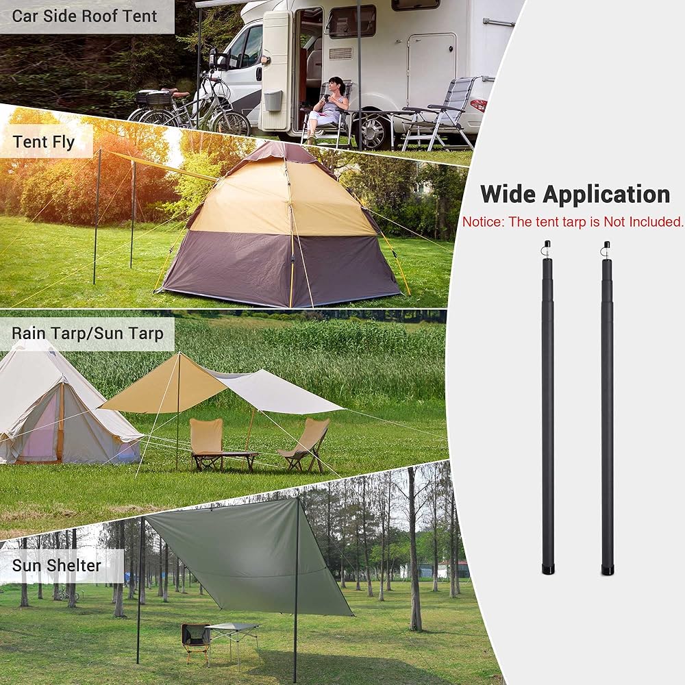 قابلة للسحب والحمل - عبوتان من أعمدة القماش المتداخلة تتميز بتصميم قابل للسحب لسهولة التمدد لدعم الخيام المختلفة والانكماش لسهولة التخزين؛ خفيفة الوزن مع حقيبة حمل لسهولة الحمل والنقل؛ تنطبق على موديلات خيمة القماش الخاصة بنا YES0401، YES0402، YES0403، YES0404، YES0405، YES0405، نعم 0406 نرحب بأي استفسار؛ قوي ومتين - خليط معدني من الألومنيوم عالي القوة ومقاوم للماء بسمك جدار 1 ملم لضمان الثبات والمتانة؛ سطح أسود غير لامع لمقاومة الخدش والصدأ؛ طرف حديد مجلفن ليناسب جميع حلقات الأعمدة؛ غطاء طرف من السيليكون لمنع قماش القنب من الانزلاق وتجنب الثقب؛ طول قابل للتعديل - 3 أقسام قابلة للتعديل في عمود واحد لتوفير نطاق تعديل كبير من 4 0 15/16 انش إلى 102 3/8 انش، يمكنك ضبطه بحرية على الطول المطلوب وفقًا للخيام والمظلات؛ سهل التركيب - لا حاجة لأي أدوات للتركيب، ما عليك سوى تمديد العمود القابل للتمدد وتثبيته إلى الطول المطلوب، ثم يمكنك وضع الأعمدة على الأرض لدعم المشمع؛ استخدام واسع - مناسب لجميع أنواع الأقمشة والخيام والمظلات بما في ذلك غطاء المأوى، hamخيمة مطر وهمية، خيمة شاطئ، مظلة شمسية وخيمة سقف جانبية للسيارة؛ مثالية لرحلتك في الهواء الطلق، والتخييم، وحقائب الظهر، والتنزه سيرًا على الأقدام، وصيد الأسماك، وحفلات الشواء، والنزهات، وما إلى ذلك