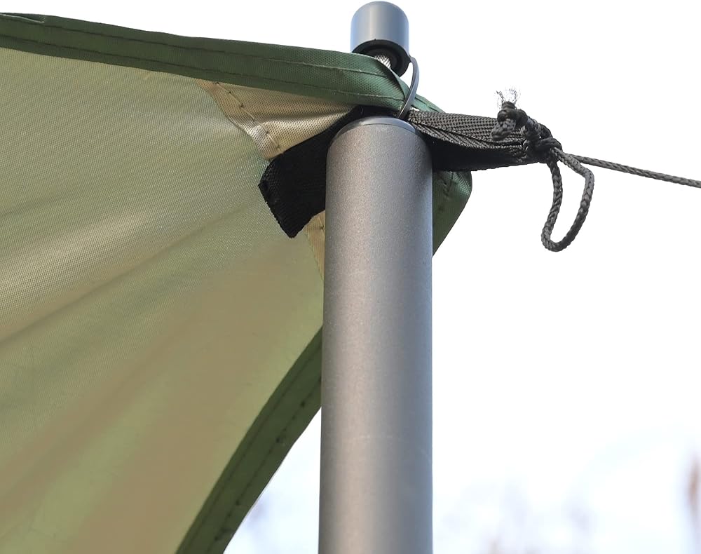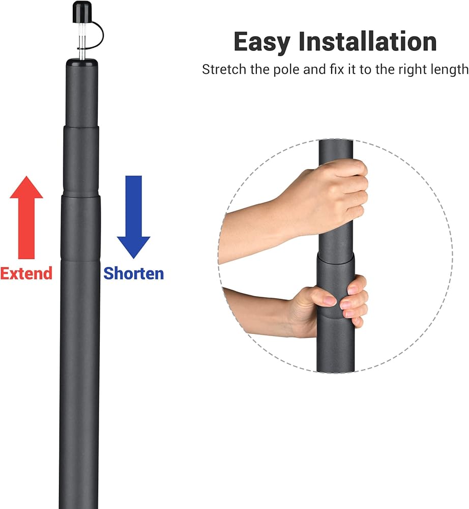 [سهل التركيب]: لا حاجة لأي أدوات للتركيب، ما عليك سوى تمديد العمود القابل للتمدد وتثبيته بالطول المطلوب، ثم يمكنك وضع الأعمدة على الأرض لدعم المشمع