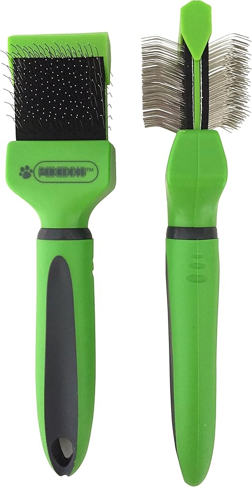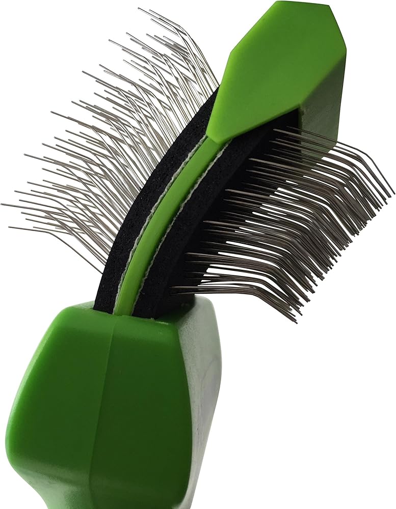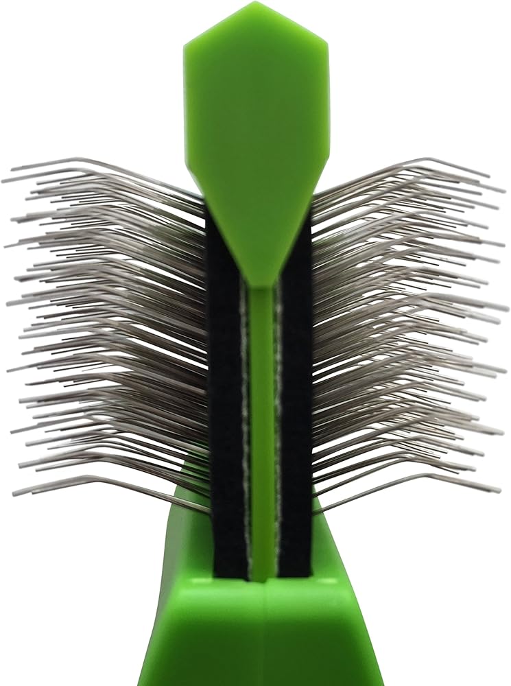 دبابيس طويلة للغاية من الستانلس ستيل تصل إلى أسفل الطبقة العلوية لإزالة الشعر المتساقط والتشابك. مثالي لفرو الشعر المتوسط إلى الطويل.