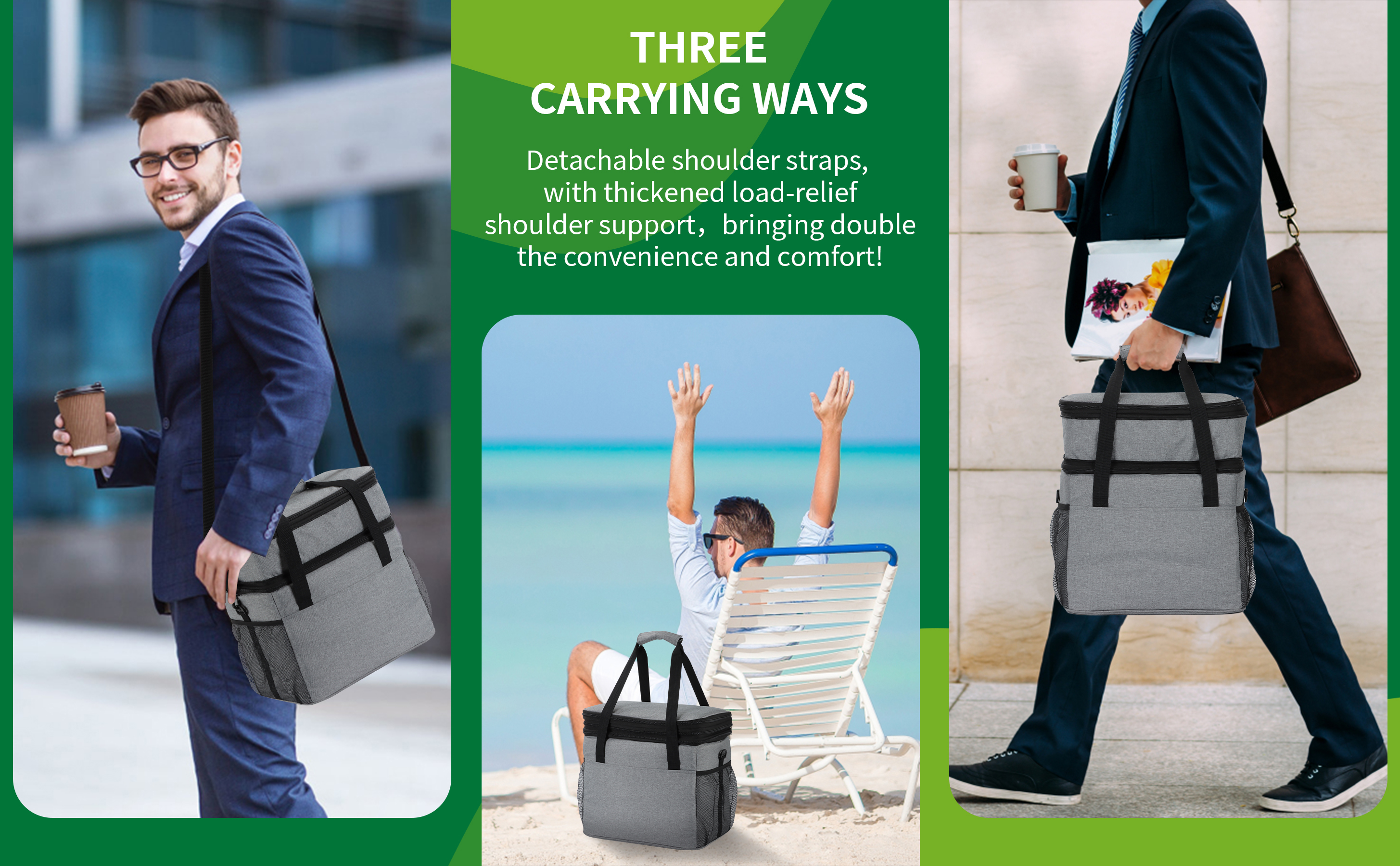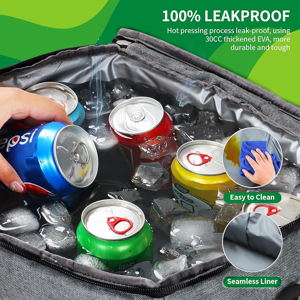 🧊مانعة للتسرب والعزل--الجزء الداخلي من صندوق الغداء البارد مع بطانة سلسة يعتمد عملية الضغط الساخن ومصنوع من مادة EVA بسمك 30CC، وهي أكثر متانة وأقوى. الجزء الخارجي لحقيبة الغداء المعزولة مصنوع من نسيج النايلون الرمادي 300D، وهو مقاوم للأوساخ وسميك، ويحافظ على البرودة لمدة تصل إلى 20 ساعة (مع عبوات الثلج).