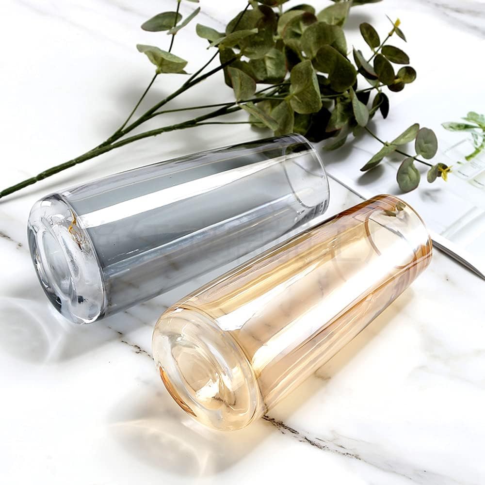 Vase Size: 8.8'' height, 2.5'' in upper diameter, and 4'' in Bottom diameter. 3 colors available: Irised Amber, Irised Gray, Irised Clear.