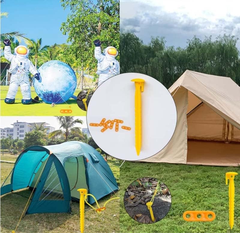 High quality tent stakes. They are made of high-quality ABS plastic, and whether you need to secure the tent during outdoor camping or firmly secure the garden fence to the ground, these plastic pile hooks are exactly what you need. They are designed as practical solutions to meet various needs, making them convenient accessories for camping, gardening, backpacking, landscaping, and more. You can use them to firmly secure tarps, lawn edges, tents, or fences