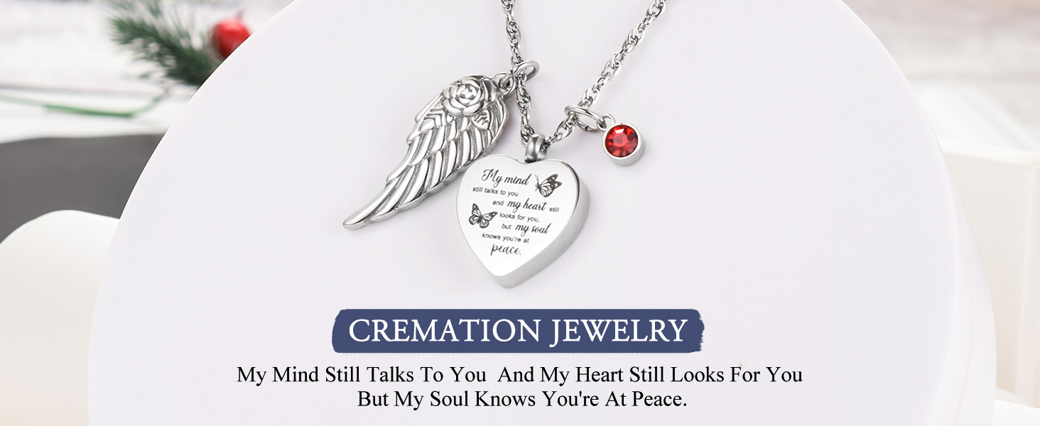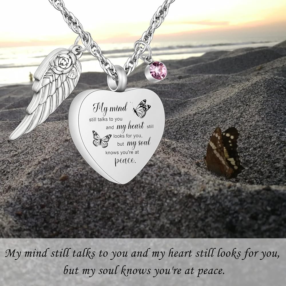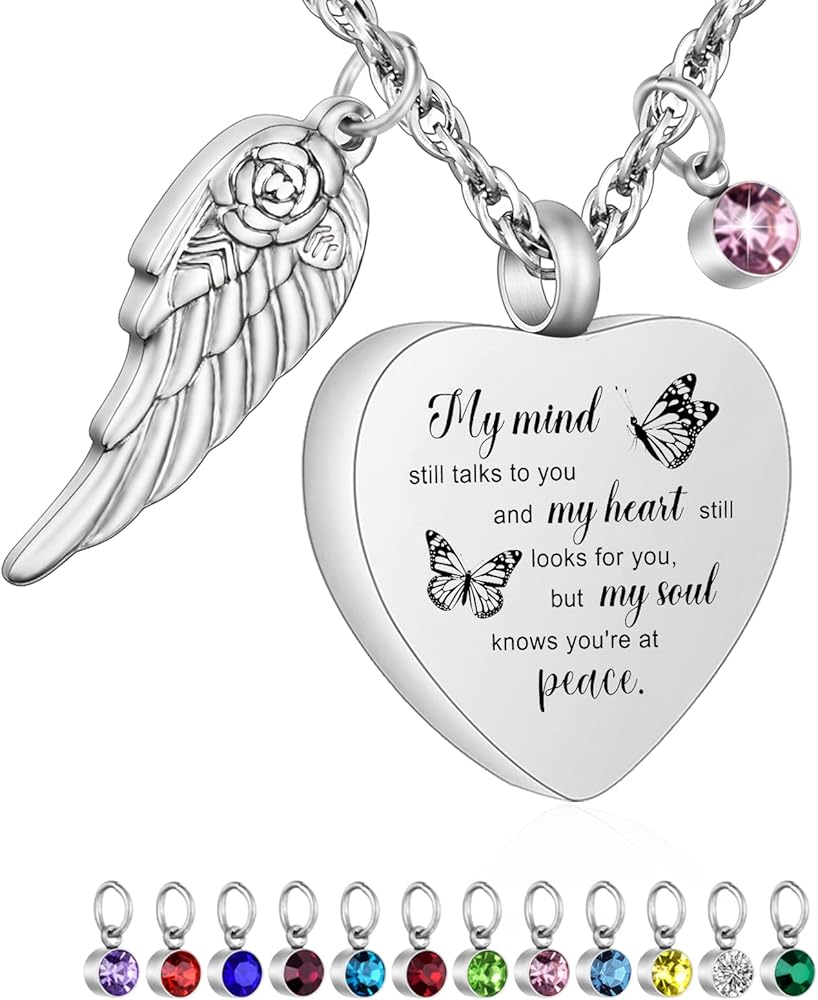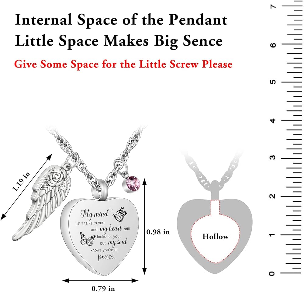 🧡【الحجم والجودة】 مجوهرات الحرق هذه مصنوعة من الفولاذ المقاوم للصدأ سعة 316L والذي لن يصدأ أو يتآكل أو يبهت أو يتلطخ أبدًا. يبلغ طول السلسلة المتينة 22 بوصة + 2 بوصة. الجانب الأمامي منقوش عليه "عقلي لا يزال يتحدث إليك وقلبي لا يزال يبحث عنك ولكن روحي تعرف أنك في سلام."