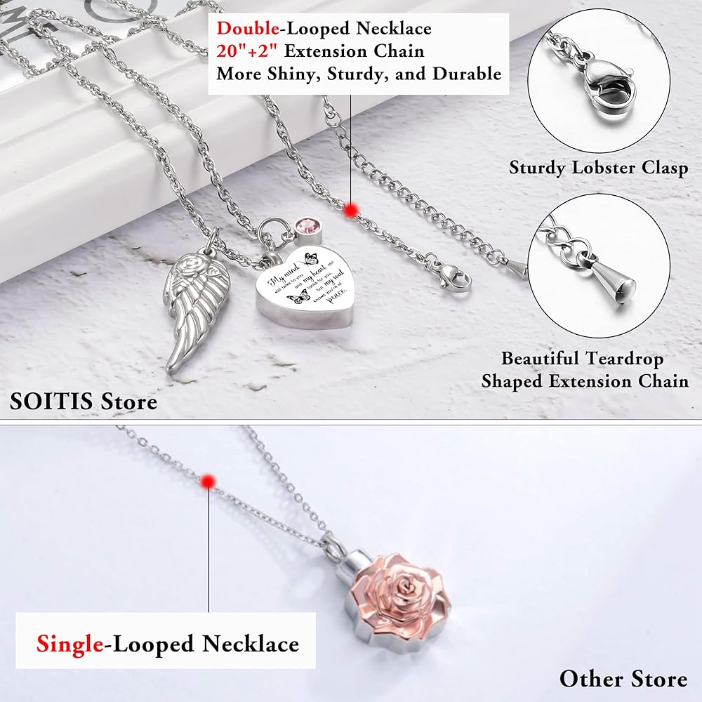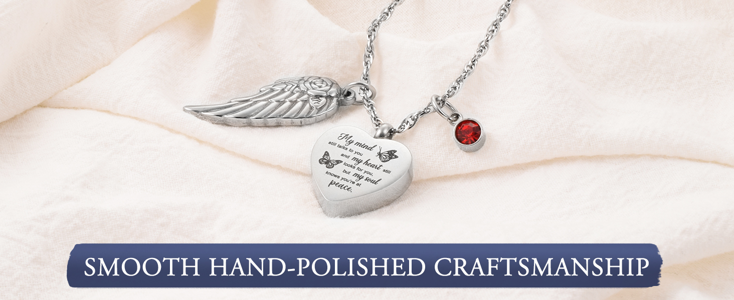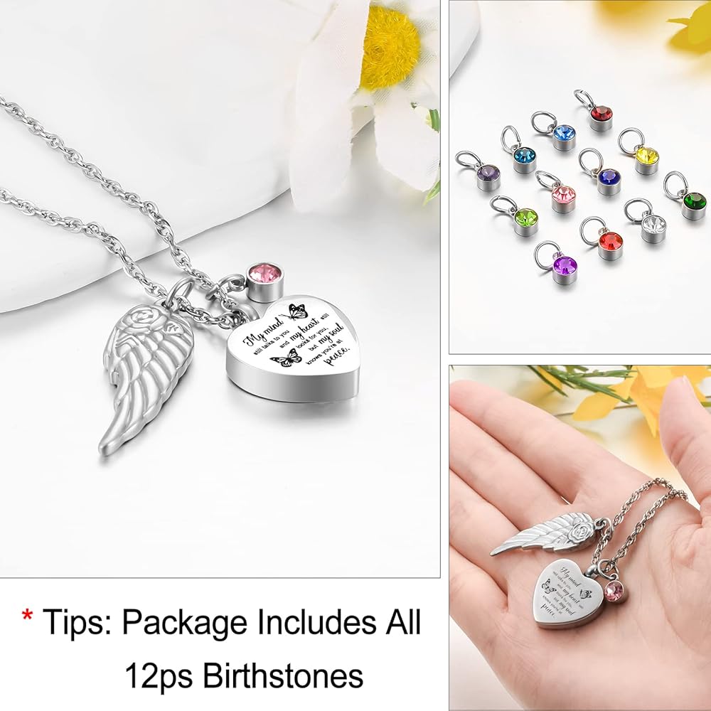 🧡【الحجم والجودة】 مجوهرات الحرق هذه مصنوعة من الفولاذ المقاوم للصدأ سعة 316L والذي لن يصدأ أو يتآكل أو يبهت أو يتلطخ أبدًا. يبلغ طول السلسلة المتينة 22 بوصة + 2 بوصة. الجانب الأمامي منقوش عليه "عقلي لا يزال يتحدث إليك وقلبي لا يزال يبحث عنك ولكن روحي تعرف أنك في سلام."