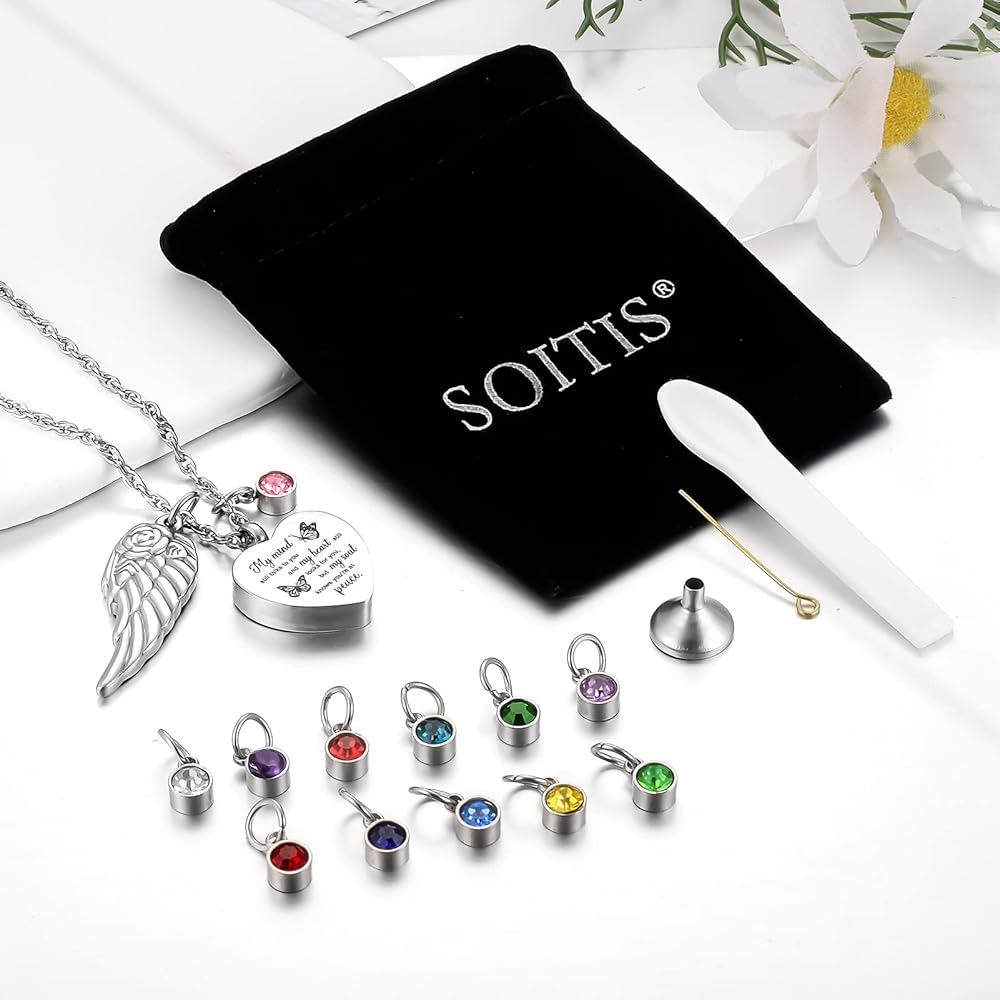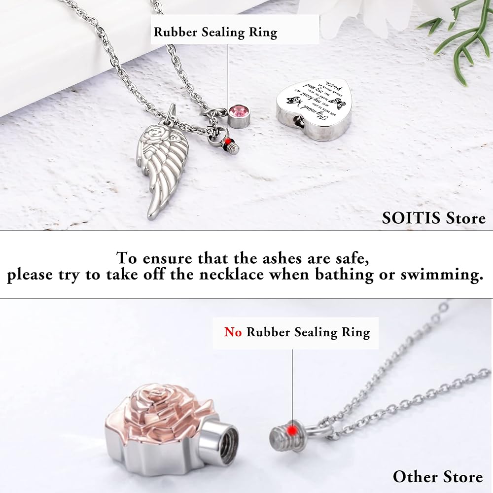🧡【تشمل العبوة】 تأتي كل عبوة مع قلادة جرة على شكل قلب، وجناح ملاك، وقلادة سلسلة حبل فضفاضة مقاس 22 بوصة + 2 بوصة، ومجموعة من مجموعات الحشو، وحقيبة مخملية. يمكنها تلبية جميع احتياجاتك لحفظ الذكريات.