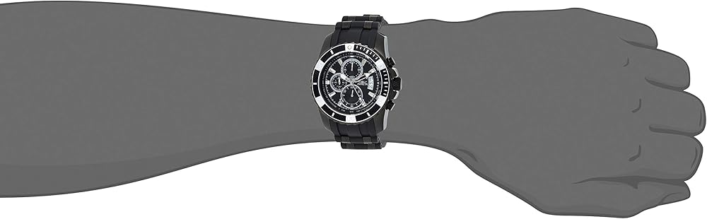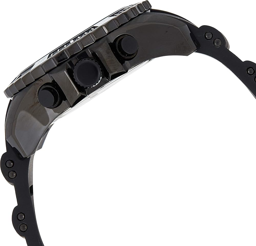 - مينا سوداء وعقارب بلون فضي وأبيض ومؤشرات للساعة وإضاءة ومقياس سرعة وهيكل ستانلس ستيل أسود مطلي بالأيون وسوار بولي يوريثين أسود مع طبقات من الستانلس ستيل الأسود المطلي بالأيون.