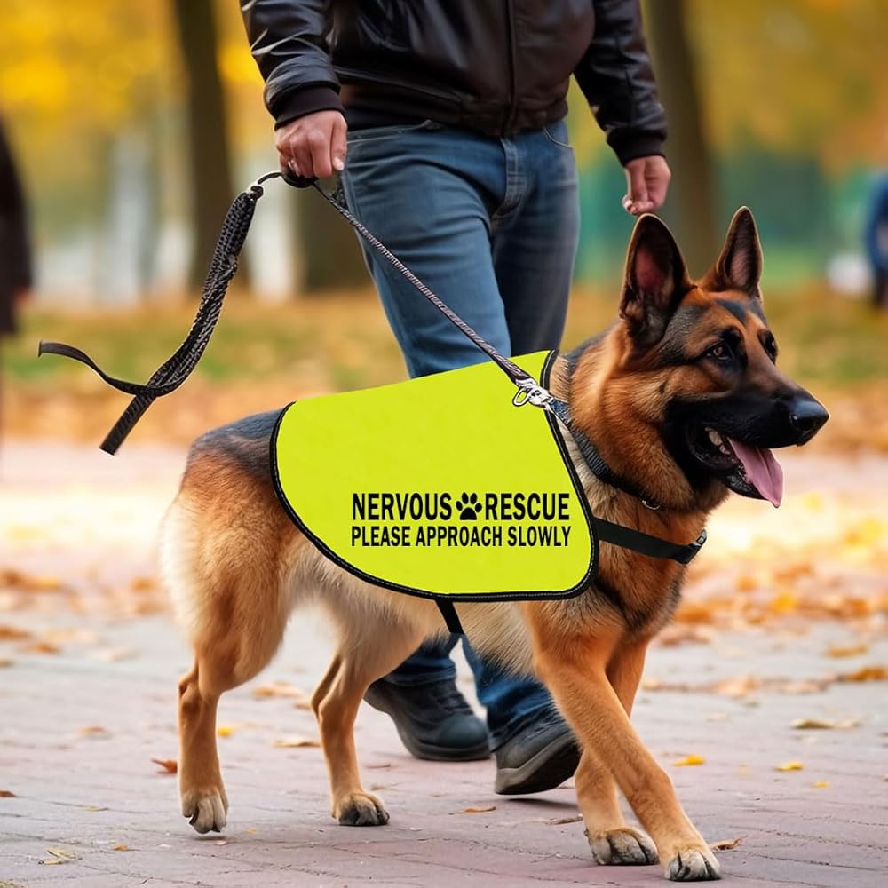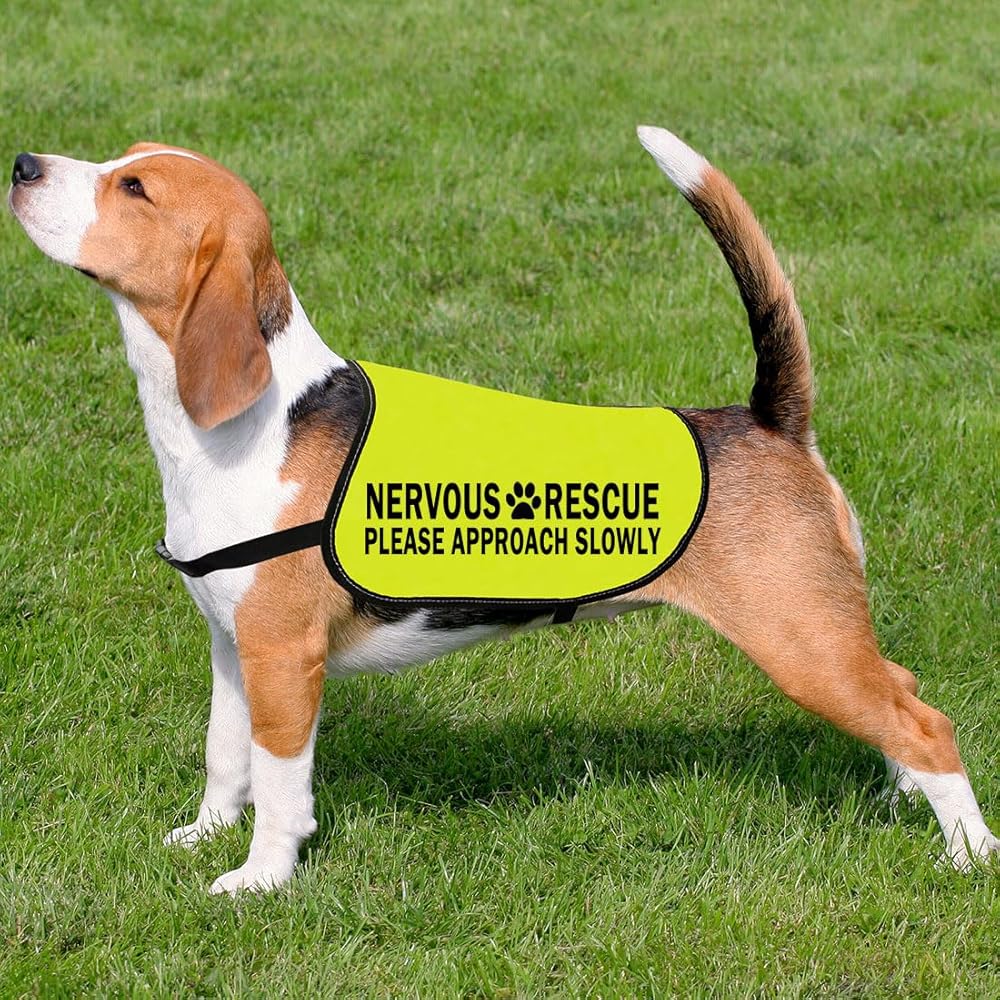 Printed on the both side only as shown. It reads: NERVOUS RESCUE PLEASE APPROACH SLOWLY.