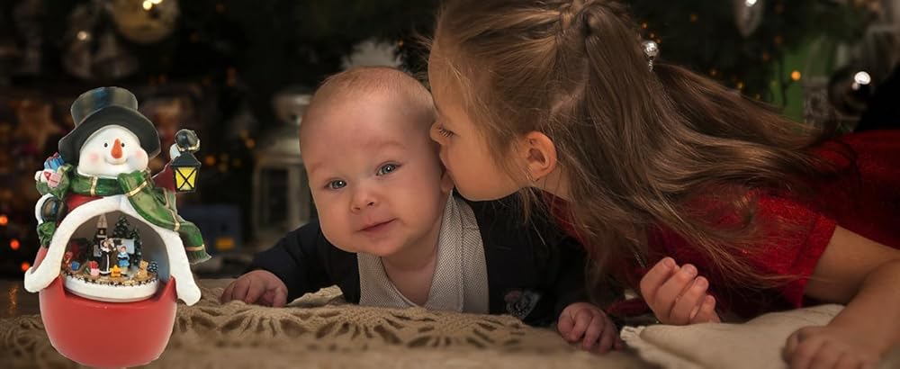 زينة رجل الثلج من البوليريسين مع موسيقي وضوء ليد وقطار متحرك. أبعاد المنتج 4.8 × 4.2 × 7.1 انش