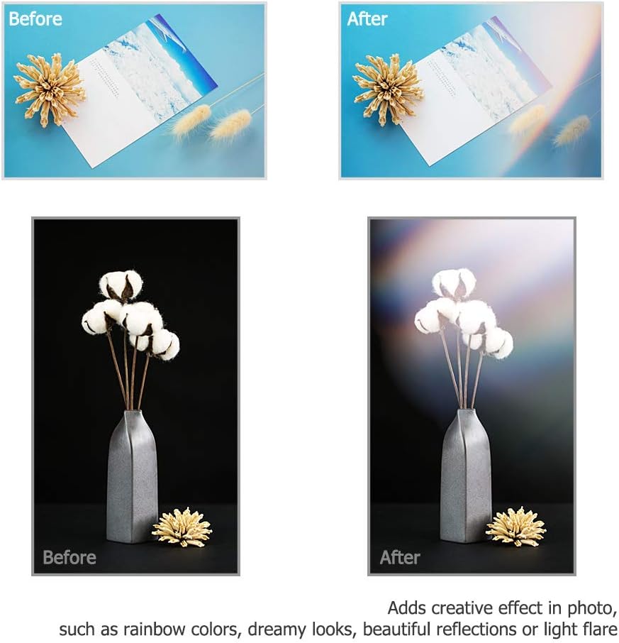 【إطلاق إبداعي】كرة الكريستال مفيدة لتقسيم أشعة الضوء إلى مكونات طيفية مختلفة، والتي يتم عرضها بألوان قوس قزح. ستضيف تأثيرات إبداعية في الصور، مثل ألوان قوس قزح والمظهر الحالم والانعكاسات الجميلة أو التوهج الخفيف أثناء التصوير.