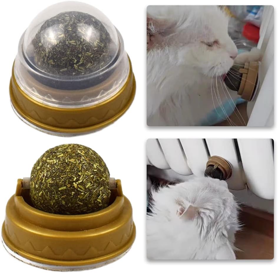 2 Pack Catnip Toys Balls Edible Catnip Toys Natural Licking Treats Cat Wall Treats for Relieve Cat Anxiety Cat Toy