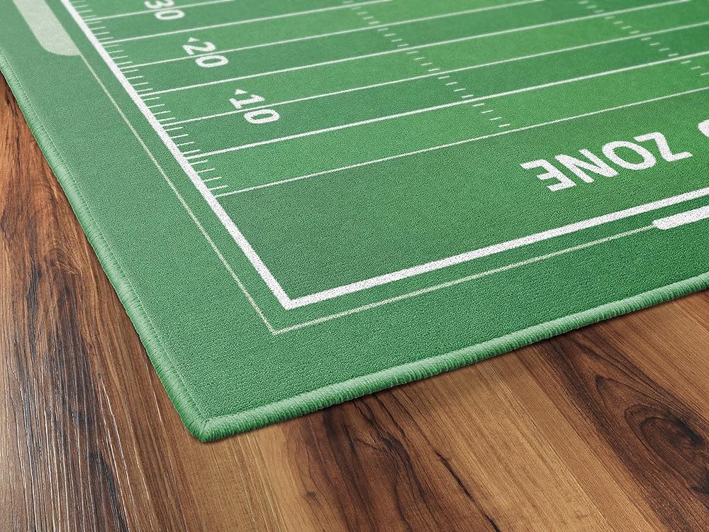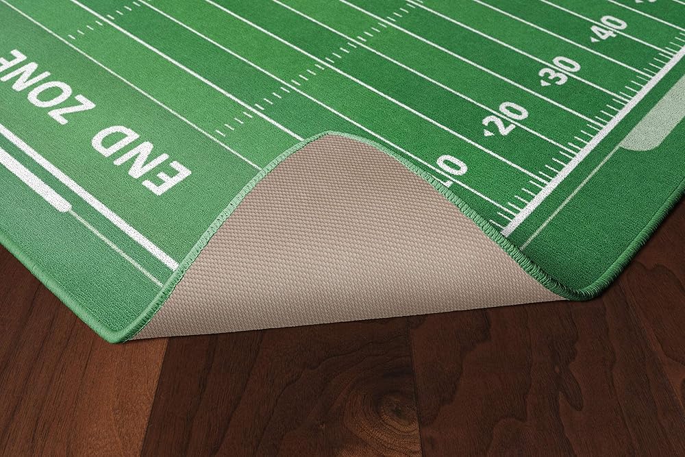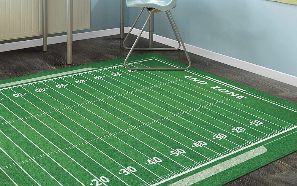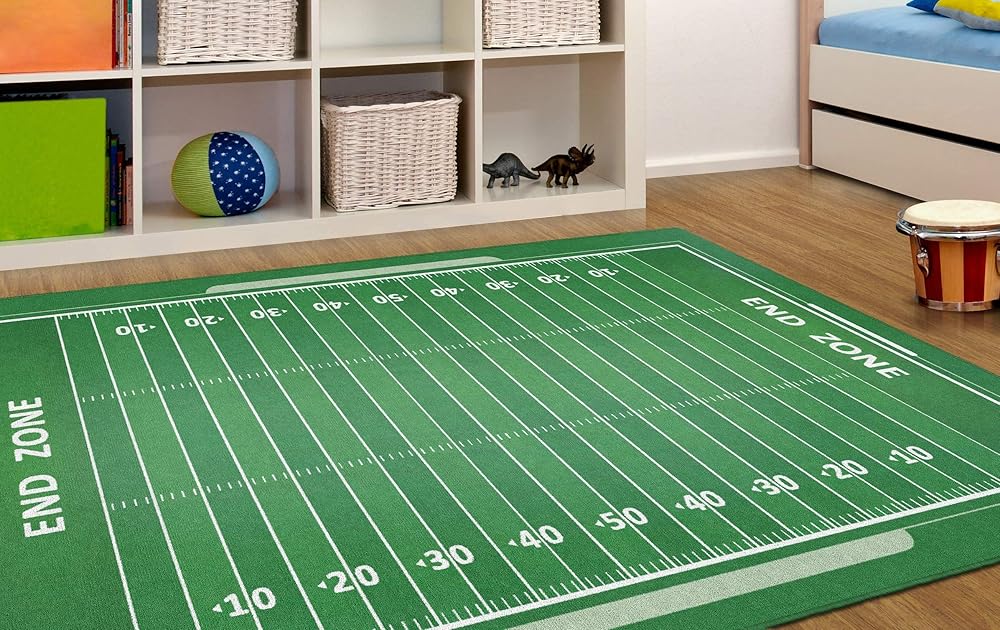 سيحب عشاق الرياضة من جميع الأعمار هذه السجادة الممتعة ذات طابع كرة القدم لغرفة نومهم أو غرفة اللعب أو غرفة الألعاب. الألوان الزاهية والتفاصيل الدقيقة ستجعل الجميع يشعرون كما لو كانوا في لعبة الكرة!
