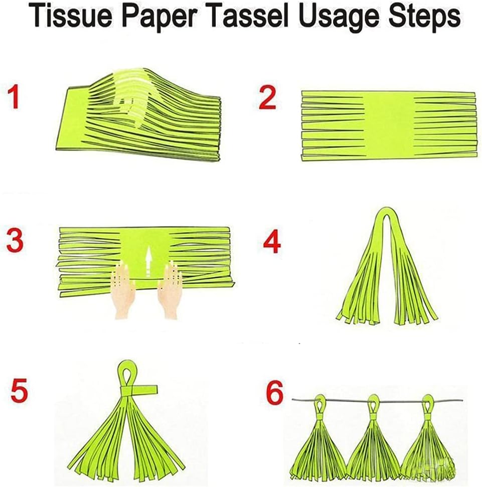 شراشيب لتزيين الحفلات: كمرجع، نوصي عادةً بـ 10-20 شرابة للتزيين على طاولة بطول 6 أقدام. ونوصي بـ 10-15 شرابة لصنع إكليل ذيل بالون بطول 5 - 6 أقدام.