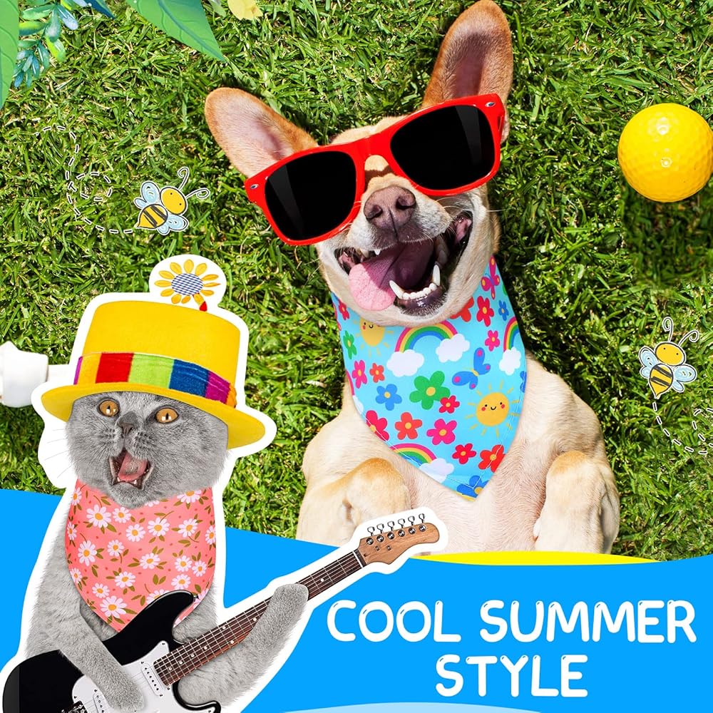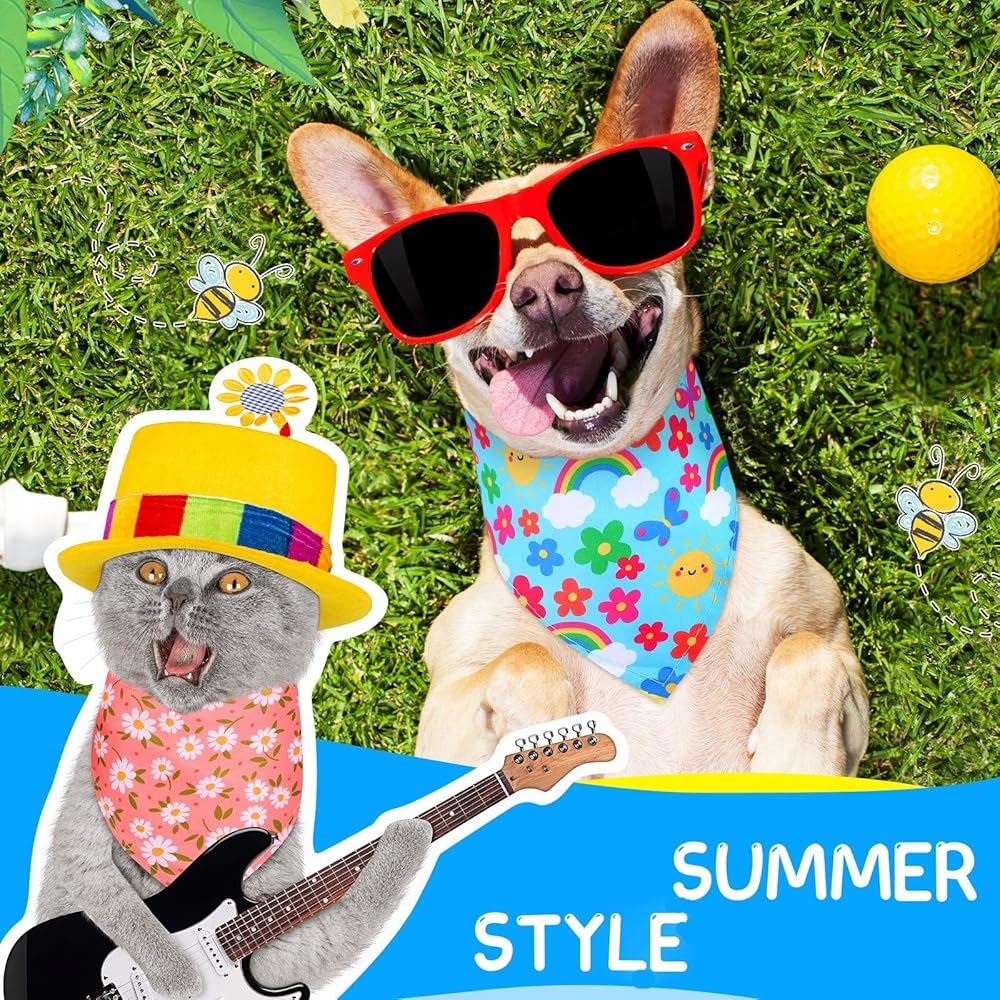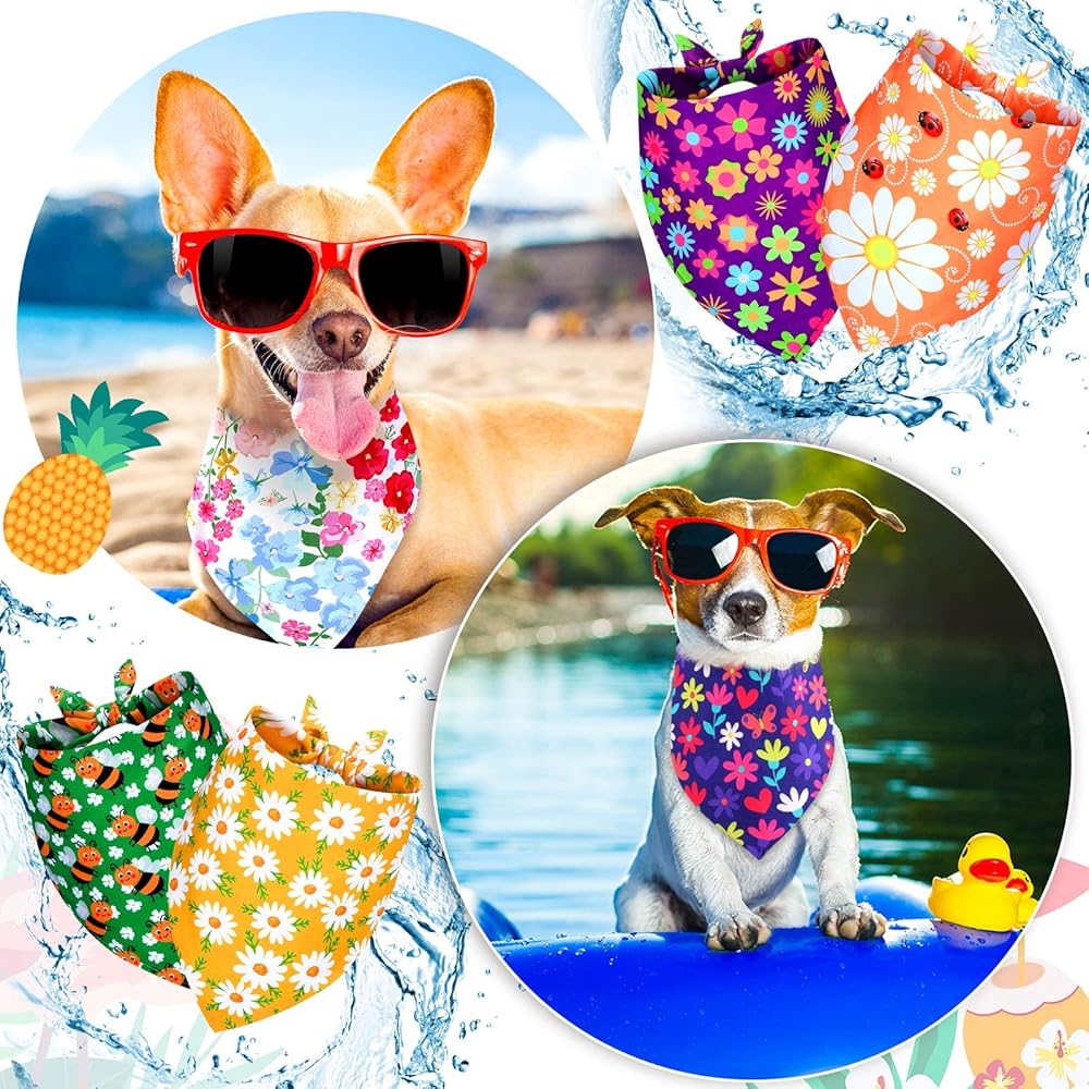 تصميم موضوع الصيف: تتم طباعة مناديل الكلاب هذه للصيف بالزهور وأنماط أخرى، تتماشى مع الألوان الكلاسيكية، بما يتماشى مع موضوع حفلة الصيف والربيع