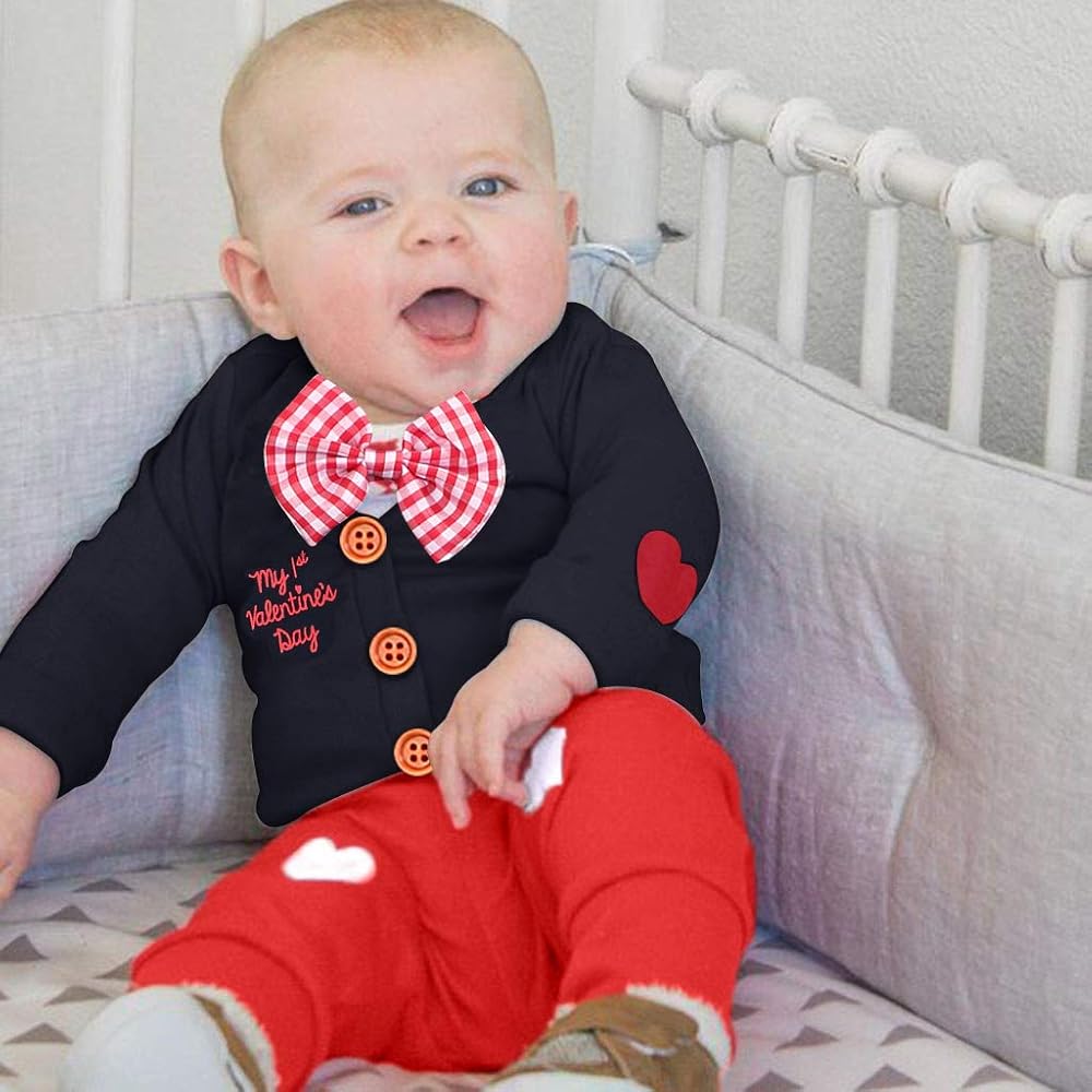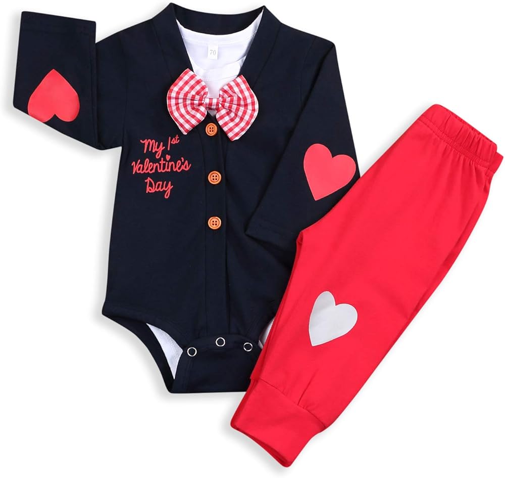 💓ملابس طفل رضيع لعيد الحب، طقم ملابس عيد الحب للأطفال حديثي الولادة، طقم سراويل رجل صغير، طفل رضيع، ملابس عيد الحب الأول، رومبير طفل رضيع لعيد الحب