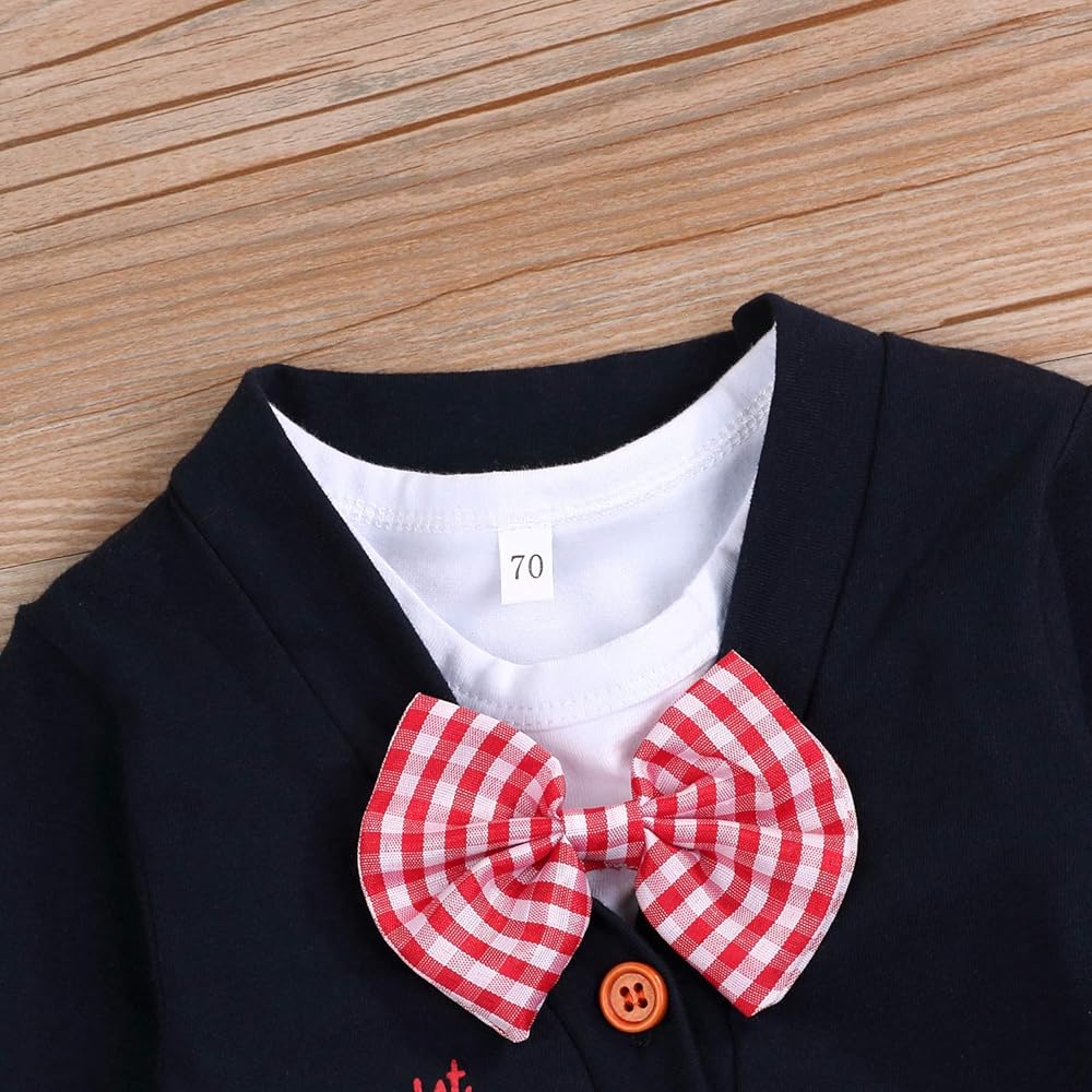 💓 تصميم لطيف للغاية ومضحك، رومبير أبيض قصير الأكمام مع عقدة فيونكة، بدلة كارديجان طويلة الأكمام مطبوعة على شكل قلب، طراز رجل لطيف يجعل طفلك مميزًا في عيد الحب.