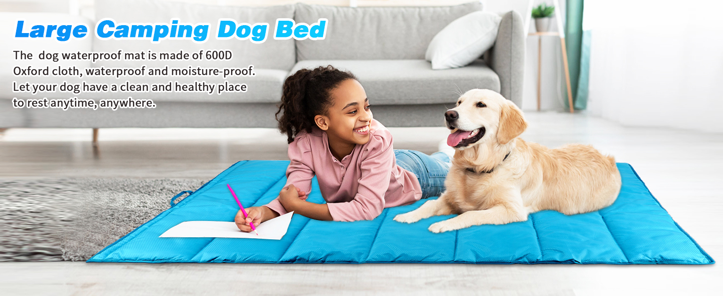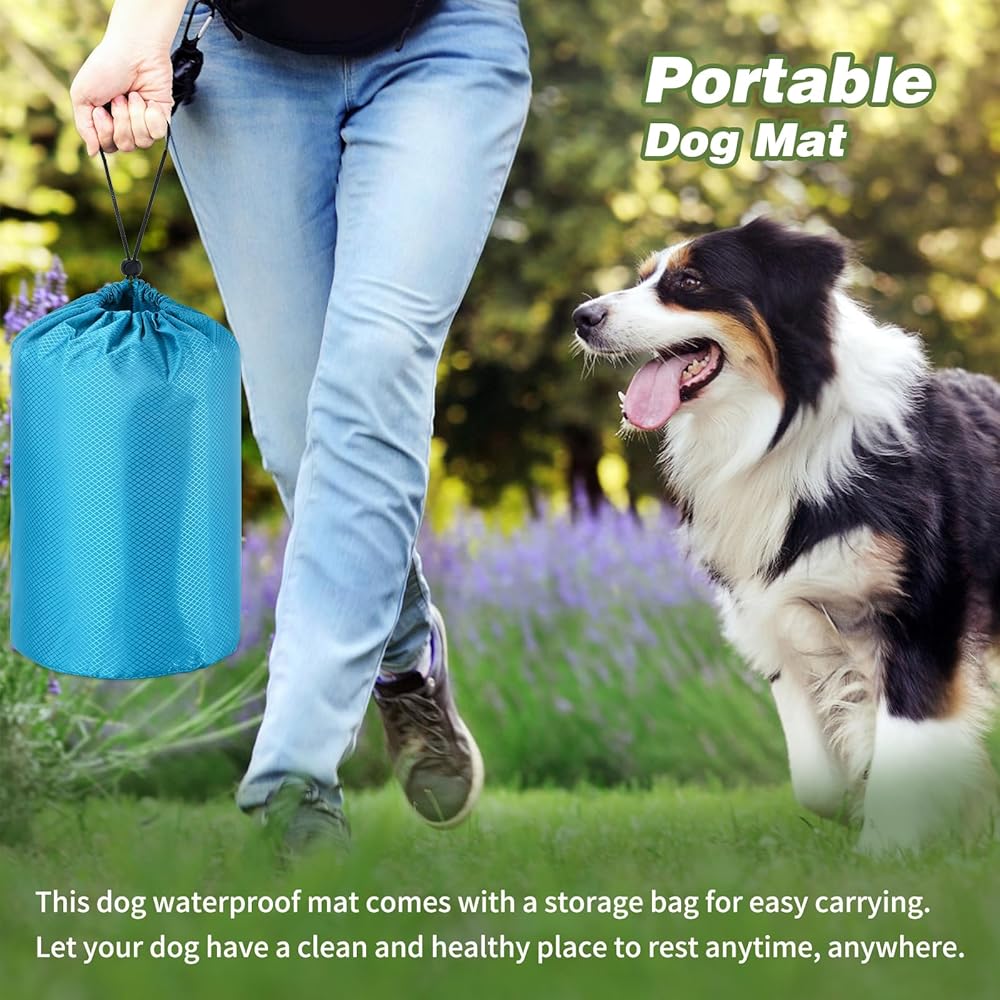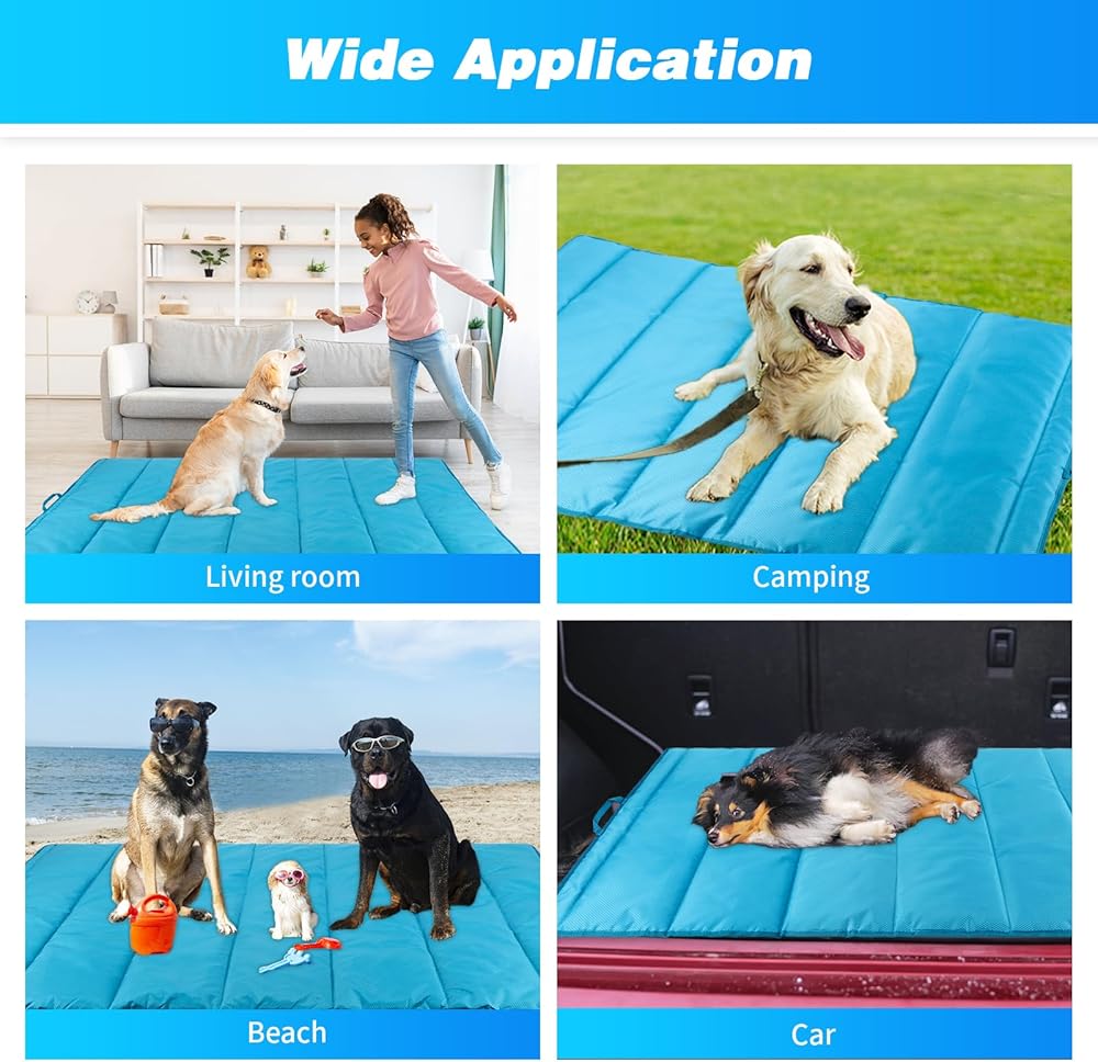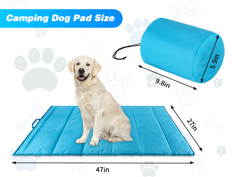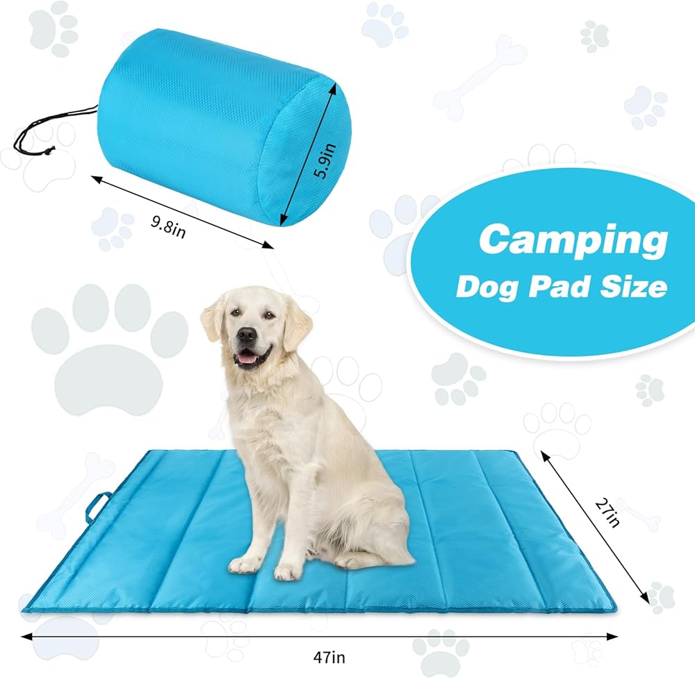 YUEPET سرير كلب خارجي مقاوم للماء مقاس 47 بوصة × 27 بوصة، سرير كلب محمول للتخييم، سهل التنظيف، بساط للكلاب أثناء السفر في الهواء الطلق للكلاب الكبيرة والمتوسطة الحجم مع حقيبة تخزين (سماوي)