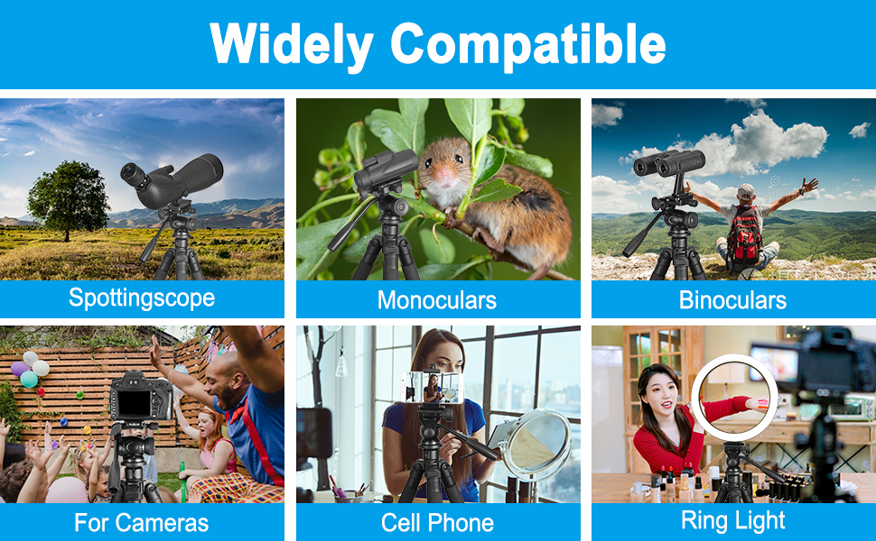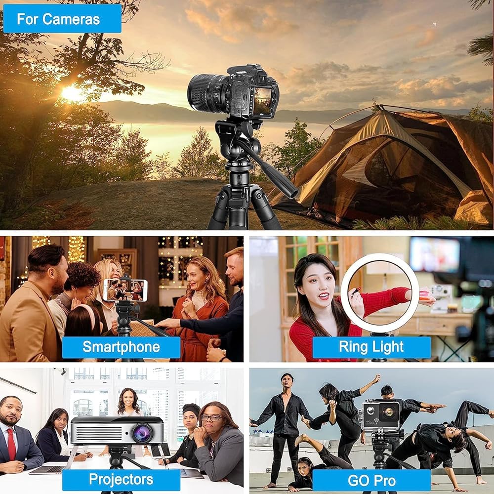 حامل الكاميرا ثلاثي القوائم عالي التحمل مناسب لتصوير الأحداث وتسجيلات الفيديو مثل صور السيلفي، وصور العائلة، والحفلات، والسفر، والتنزه سيرًا على الأقدام، والرياضة، واليوتيوب، ومدونات الفيديو، ومؤتمرات الفيديو، والاجتماعات عبر الإنترنت، والبث المباشر، وتسجيل الألعاب، ومقاطع فيديو اليوجا، والخارج الرياح، وغيرها من الأنشطة في الداخل والخارج. يساعدك نظام تعديل زاوية الساق ذو 3 أوضاع على التقاط الصور بمرونة لسيناريوهات وظروف التصوير المختلفة