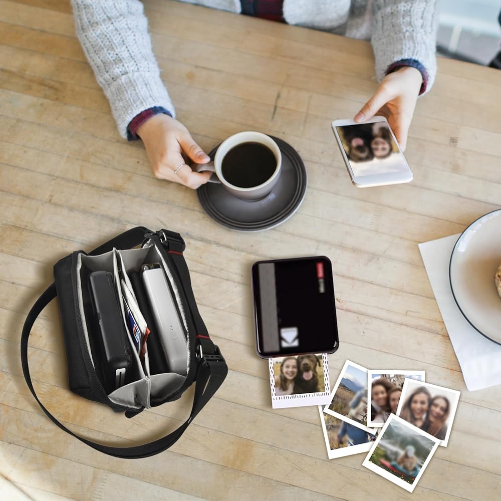 • لحقيبة Kodak Pixpro مع حزام كتف قابل للتعديل والإزالة: بالنسبة لحقيبة طابعة الصور الصغيرة Canon Ivy 2 المصممة لتوفير أقصى قدر من الراحة، تأتي حقيبة حمل كشك الصور بولارويد الخاصة بنا مجهزة بحزام كتف قابل للتعديل والإزالة. احمل طابعة الملصقات بشكل مريح على كتفك، ووزع الوزن بالتساوي، وحرر يديك للقيام بمهام أخرى. إذا كنت تفضل ذلك، استخدم المقبض القوي لسهولة النقل عند الرغبة في أسلوب الحمل التقليدي.