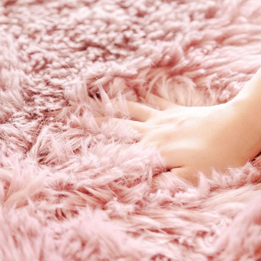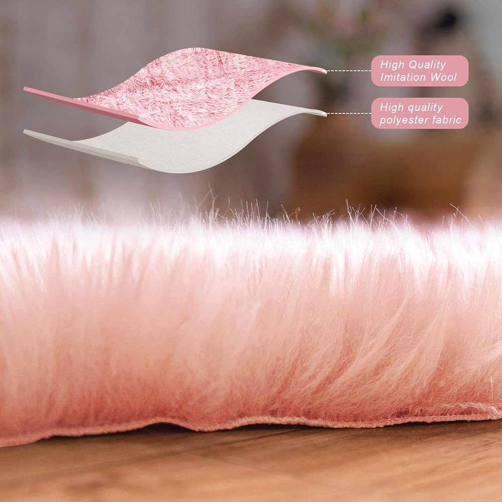 🎉متعددة الاستخدامات: سجادة من الفرو الصناعي متعددة الاستخدامات لتكون غطاء أريكة فاخر، سجادة غرفة نوم الأطفال تستخدم لكل من وسادة مقعد الكرسي أو ديكور غرفة المعيشة في غرفة النوم. سجاد وردي لغرف البنات.