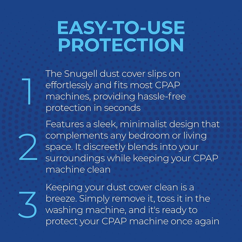 سهل الاستخدام: لم يكن تغطية جهاز CPAP أسهل من أي وقت مضى. ينزلق غطاء الغبار سنوجيل دون عناء ويناسب معظم أجهزة CPAP، مما يوفر حماية خالية من المتاعب في ثوانٍ.