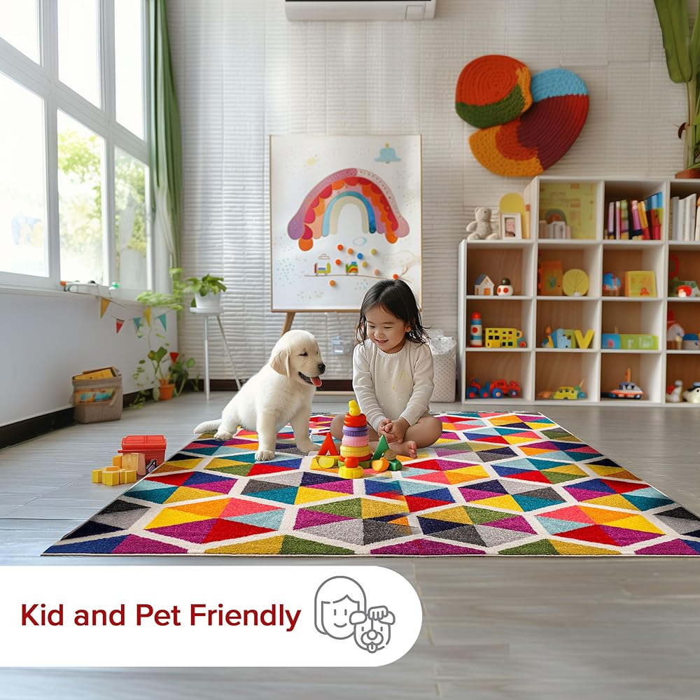 Designed with resilience against everyday wear-and-tear, this rug is kid and pet friendly and perfect for any area of your home such as bedroom,living room, dining room, kitchen, nursery, or playroom