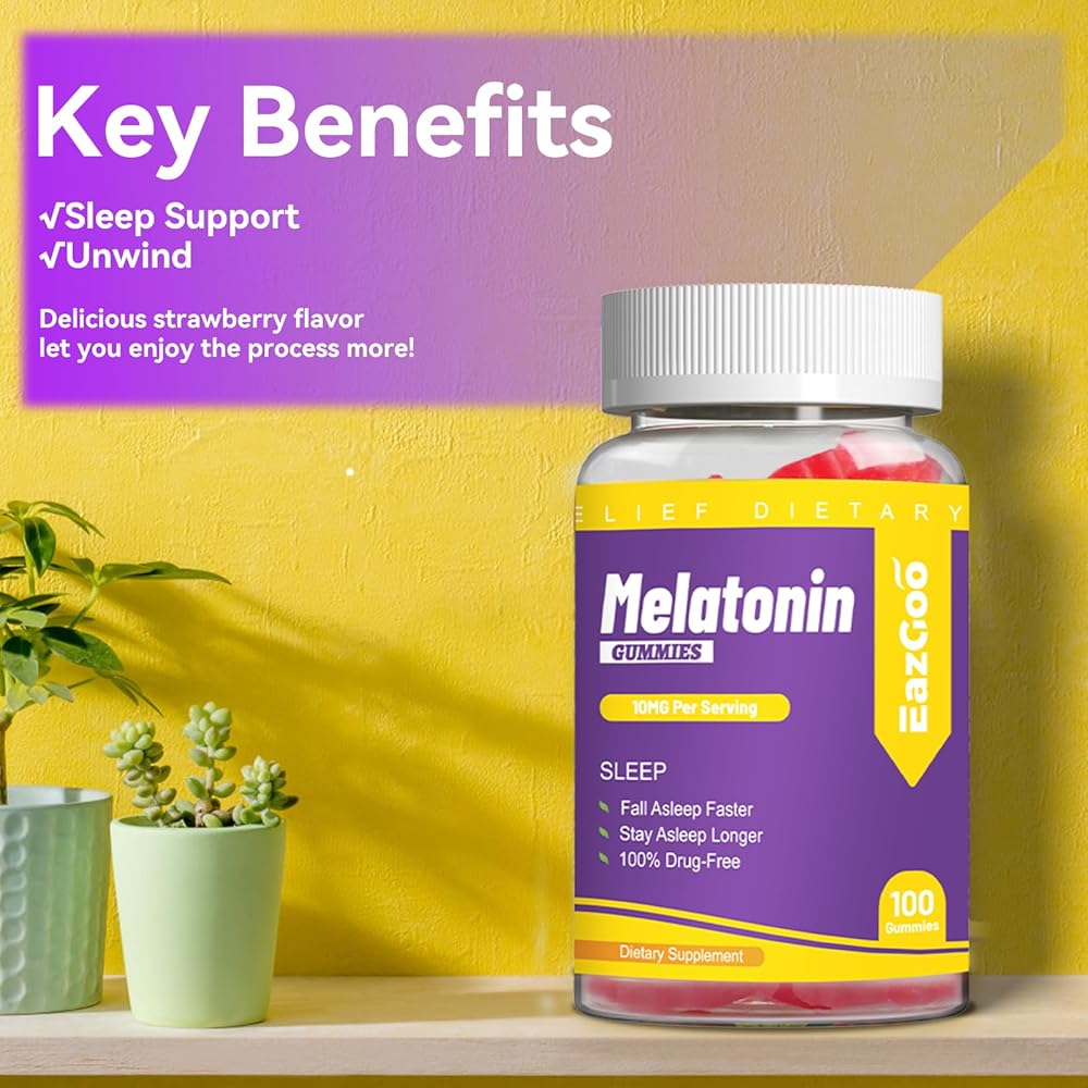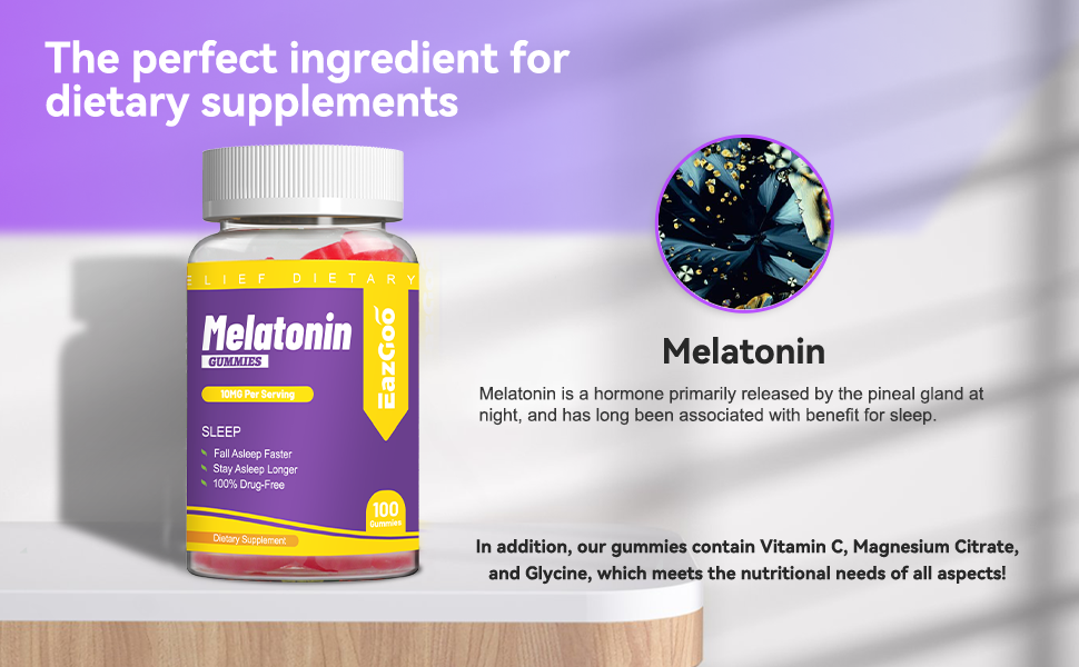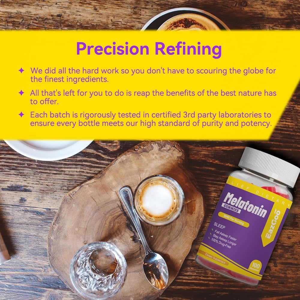 امتصاص عالي: علكات EAZGOO الميلاتونين، مصنوعة من الميلاتونين النقي بنسبة 99%.