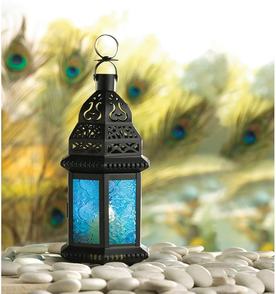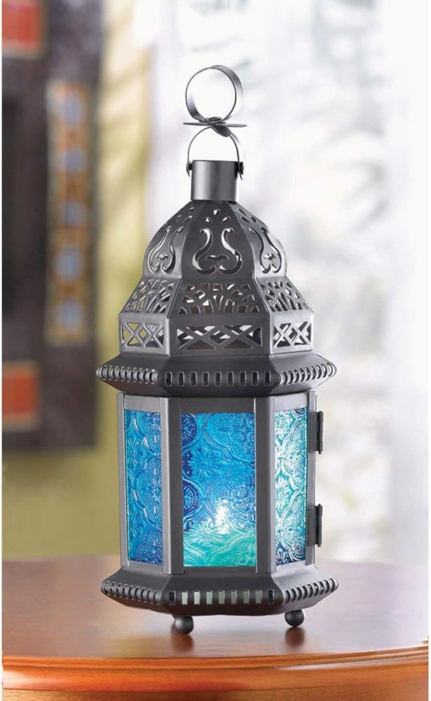 ألوان الكوبالت الخاصة بفانوس الشموع المعدني الفريد هذا تجلب إلى الأذهان صور المغرب الغامض! الشمعة غير متضمنة.