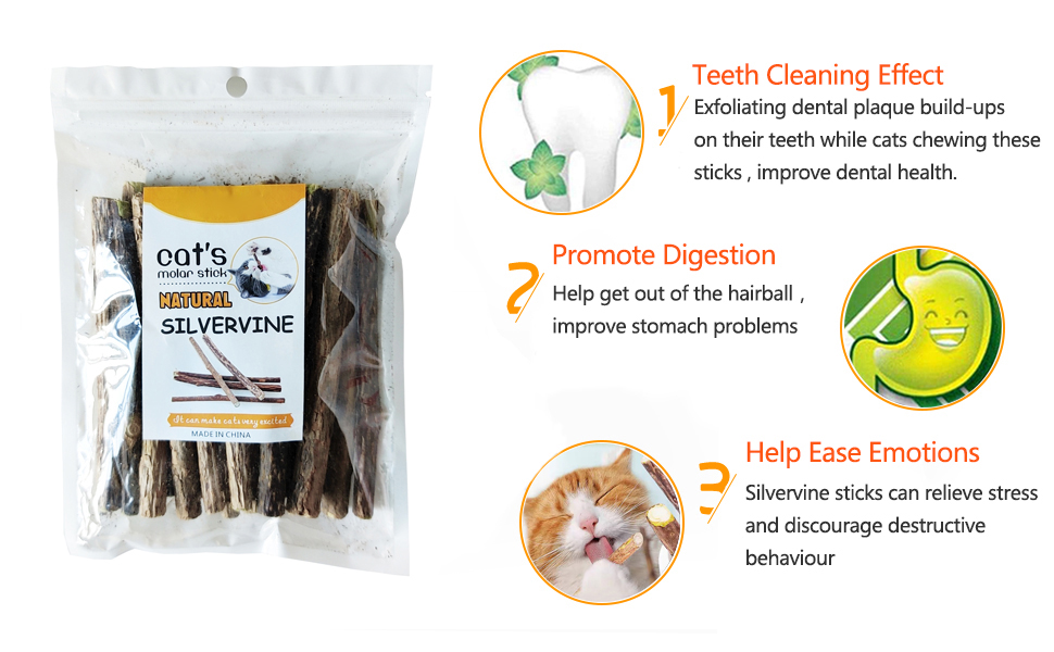 【SAFETY】:100% natural silvervine sticks.Chemical free,no additives.Safe to swallow