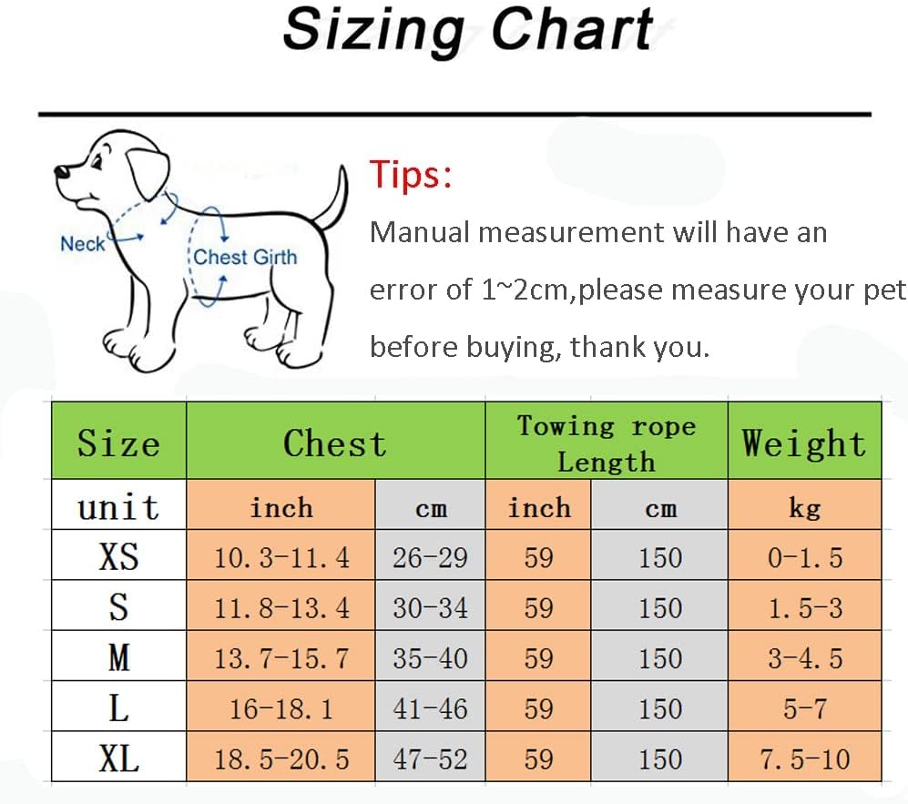 【ADJUSTABLE SIZE:】Harness for small medium dogs cats has five sizes: S;M;L;XL, you can choose according to your dog and cats. In addition, each dog harness for small dogs and cats can be adjusted in size until it fits the dog and cats, with a certain space for movement, you don't need to worry about the dog sliding out or suffocating.Please refer to the size drawing to select a suitable one.