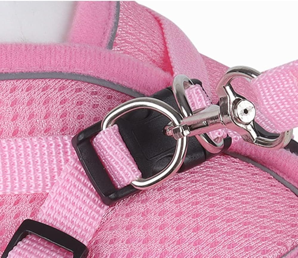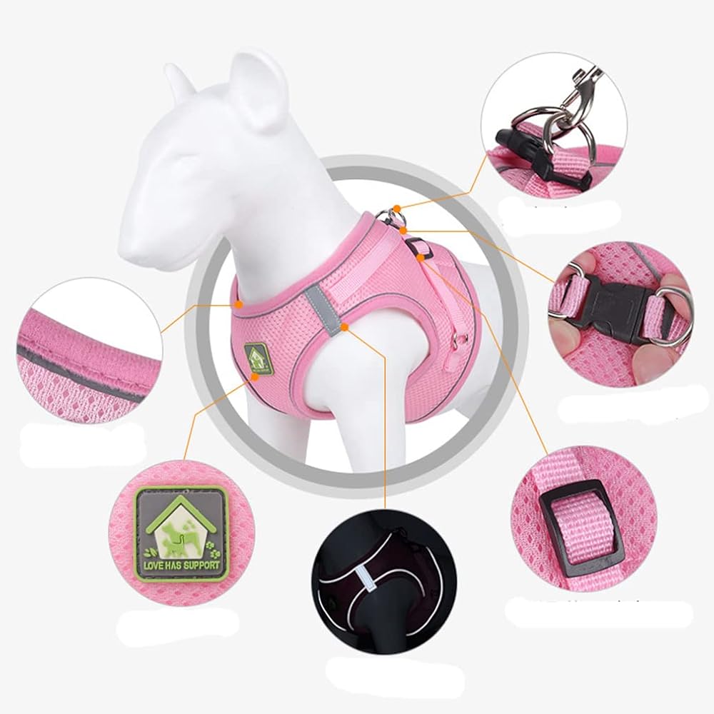 【COMFORTABLE AND SAFE:】Made with a soft, breathable air mesh, ultrathin, and super breathable and more comfortable, this lightweight pet harness is perfect for walks in hot summer. The vest-style design disperses the pressure through shoulders and chest, uniform force, no need to worry about the danger of suffocation or choking.