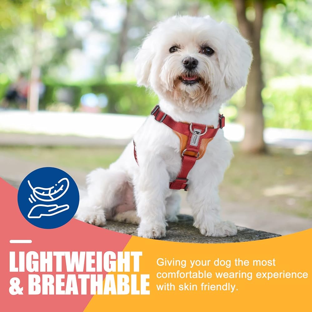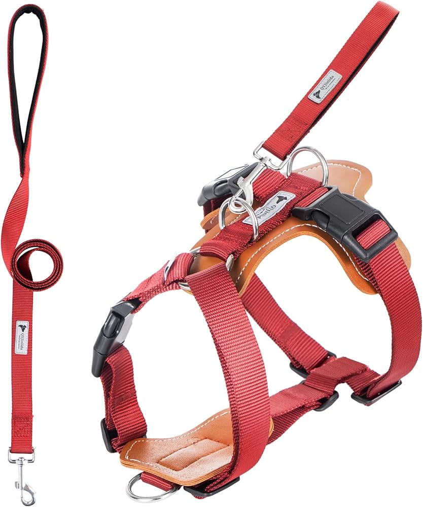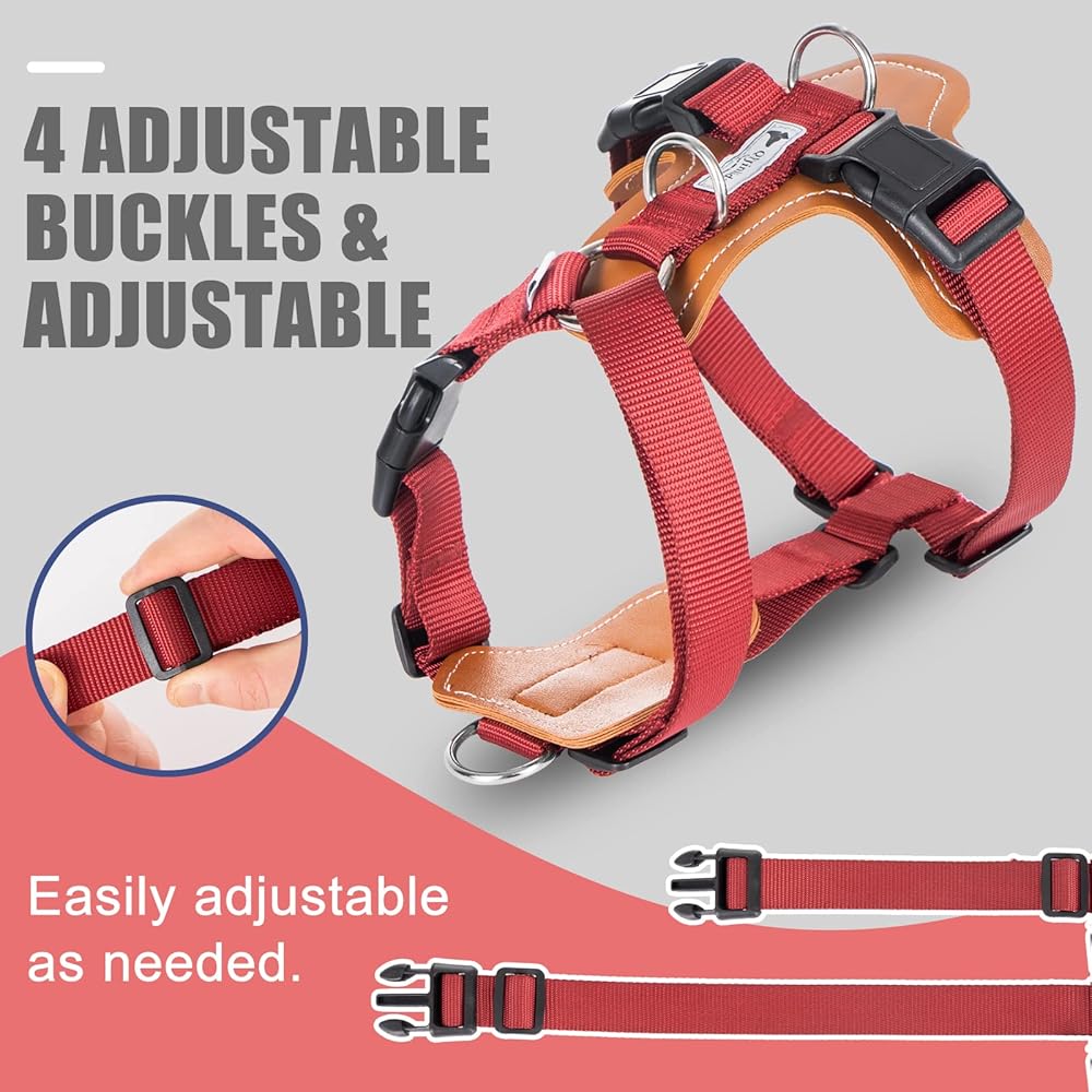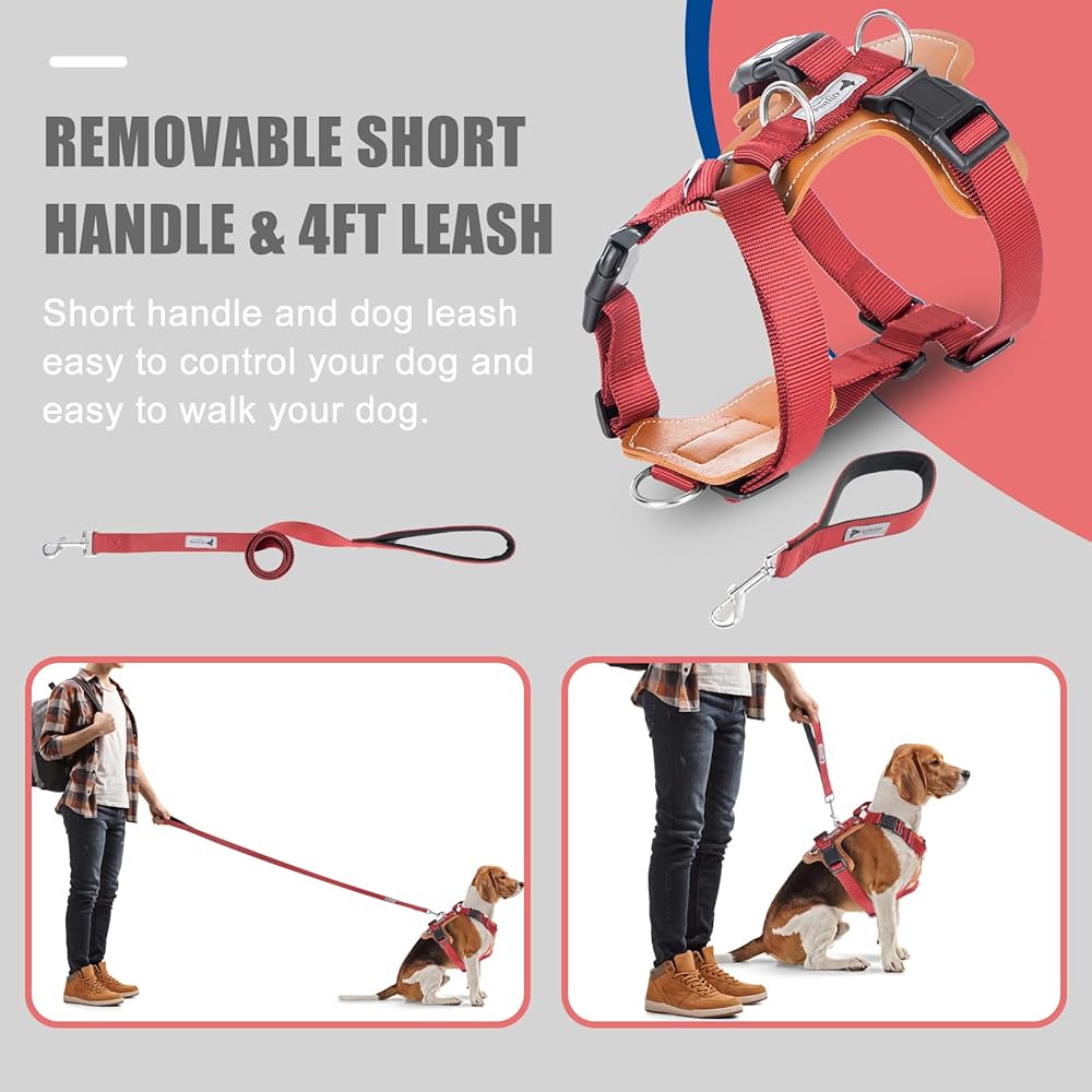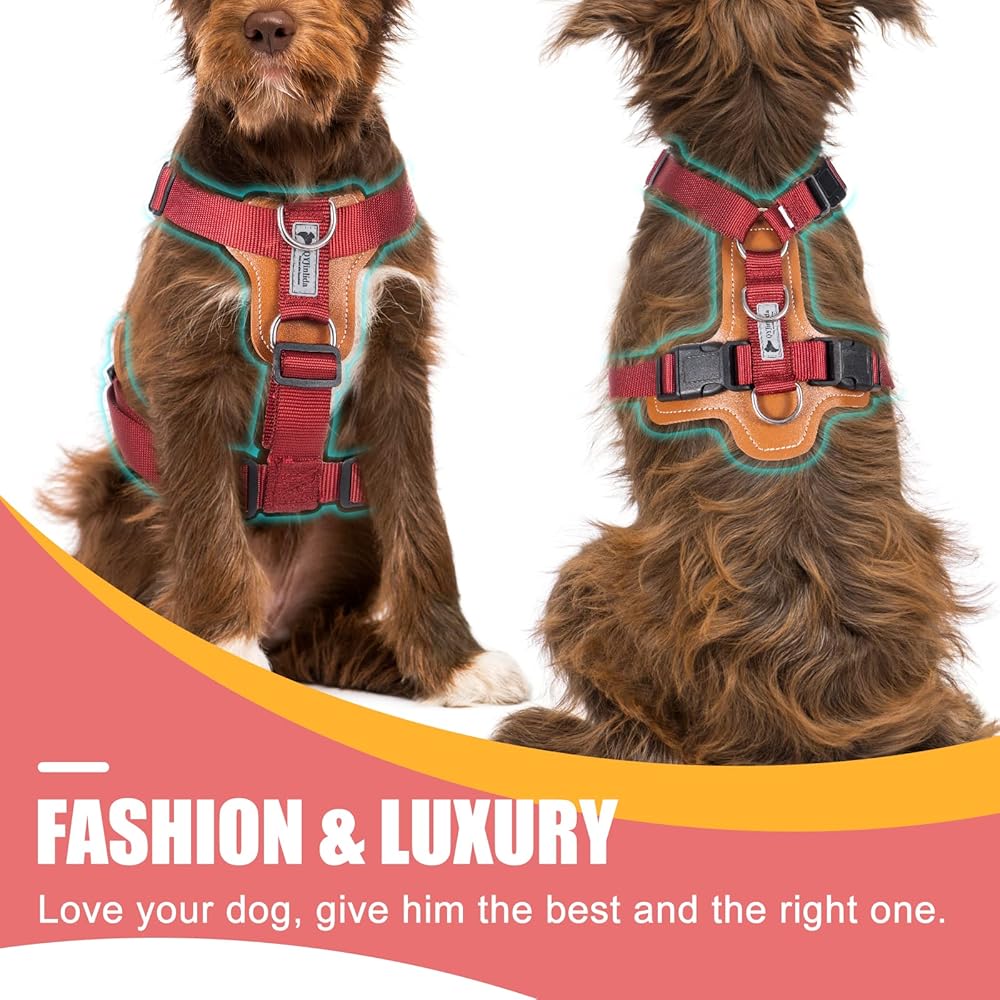 مجموعة أنيقة لحزام ومقود الكلاب، حزام جلدي مانع للسحب للكلاب مع مقبض سهل التحكم وقابل للإزالة، صدرية قابلة للتعديل للحيوانات الأليفة لجميع السلالات، سترة أكسفورد للحيوانات الأليفة مضادة للاختناق للكلاب الصغيرة والمتوسطة (أحمر، L)