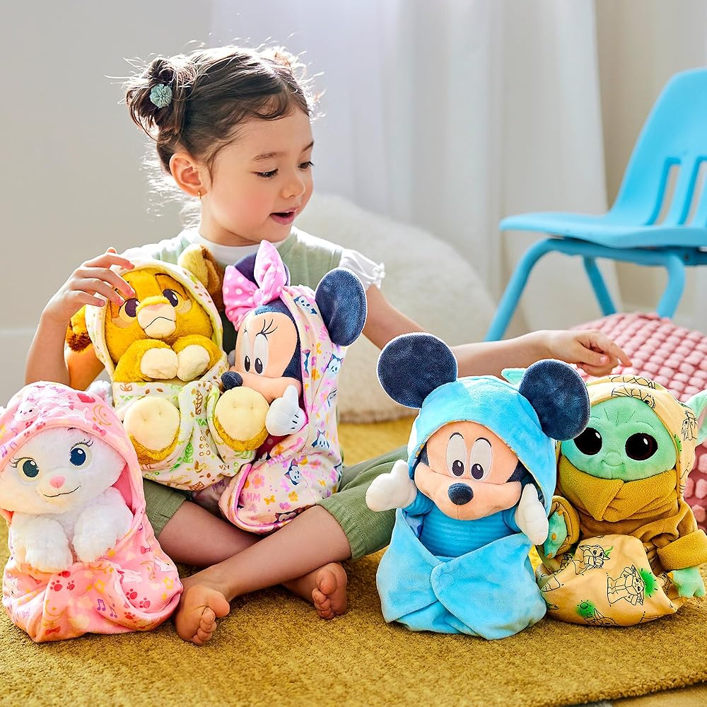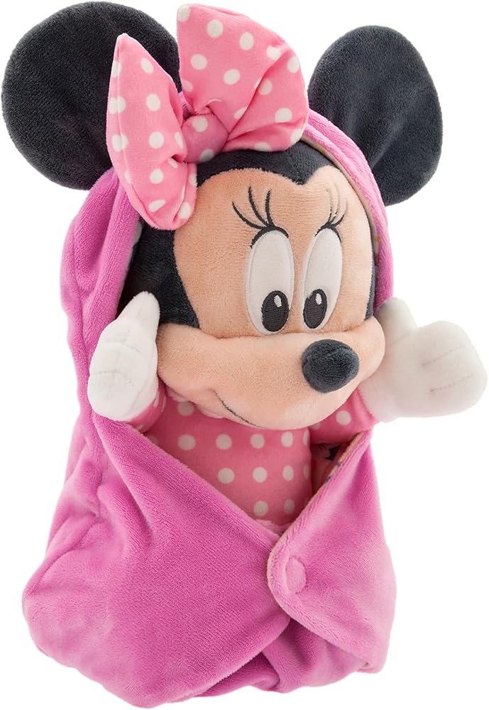 Our Disney Babies Mickey Mouse is a snuggly plush superstar. Baby Mickey wears adorable striped pajamas and is all wrapped-up in his reversible soft velour swaddle blanket with self-stick fabric closure. Why? Because he likes you!