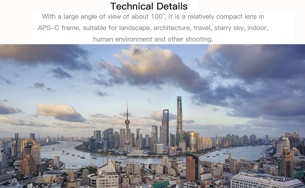 【APS-C Lens】Wide-angle prime is designed for APS-C-format mirrorless cameras and offers an 18mm equivalent focal length. Bright Aperture: Bright f/2.8 maximum aperture suits working in a variety of lighting conditions and also contributes to the sleek form factor. The 5-blade diaphragm contributes to a smooth and pleasing bokeh quality.