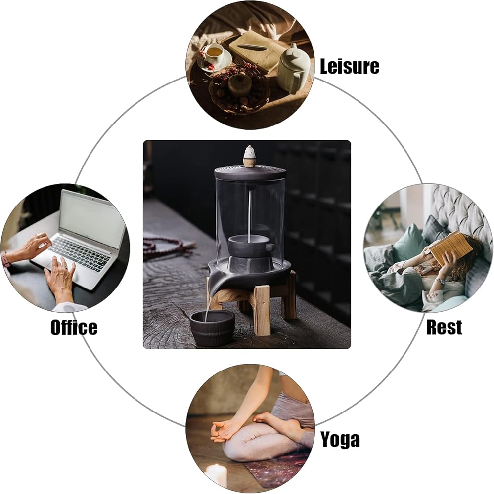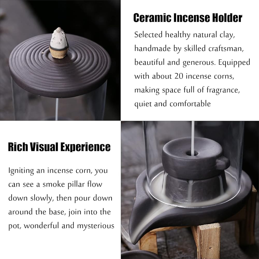 【Wonderful Aroma Experience】Ignite with a reflux cone, beautiful smog slowly flowing down like a waterfall, pouring down around the base disc, finally into the pot. Emitting intoxicating fragrance, effectively relieving anxiety and fatigue