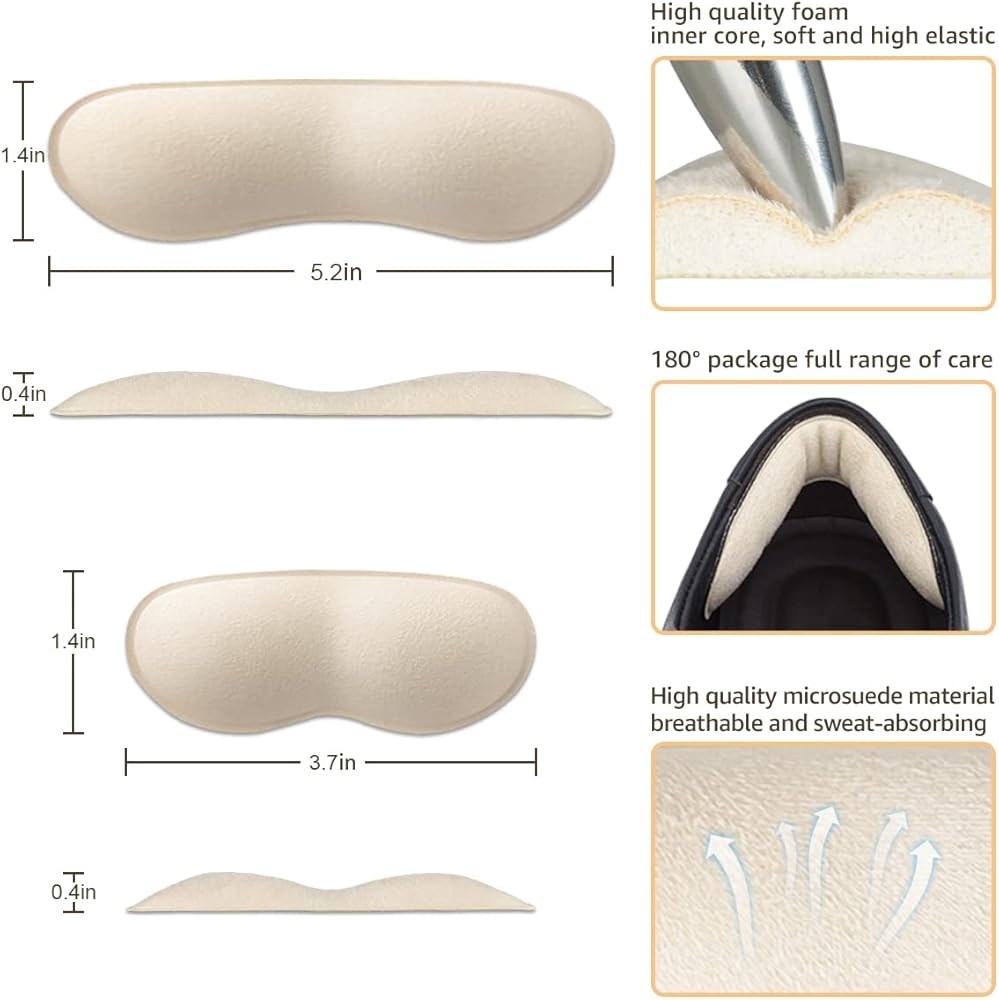 Package Includes : 2 pair of extended microsuede material heel pads + 2 pair of medium microsuede material heel pads.