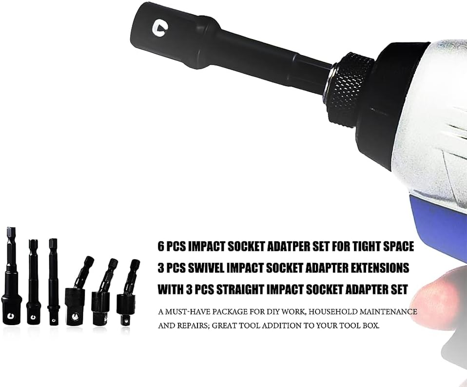 6 PCS DRILL BIT EXTENSION SET - 1/4” HEX SHANK IMPACT SOCKET ADAPTERS