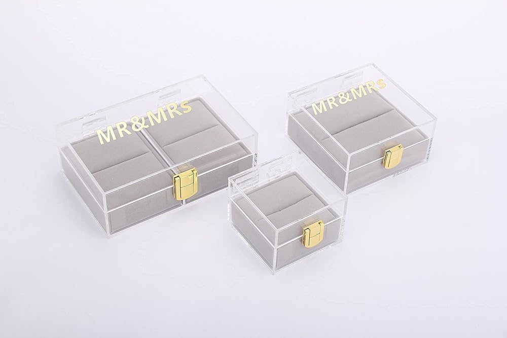 [أنماط متعددة] هناك ثلاثة مقاسات مختلفة لتختار منها. صندوق الخاتم المستخدم لحمل حلقتين، يمكنك اختيار ما إذا كنت تريد لصق حروف السيد والسيدة الذهبية المتضمنة بالفعل. لا يحتوي الصندوق الحامل ذو الحلقة الواحدة على أحرف.